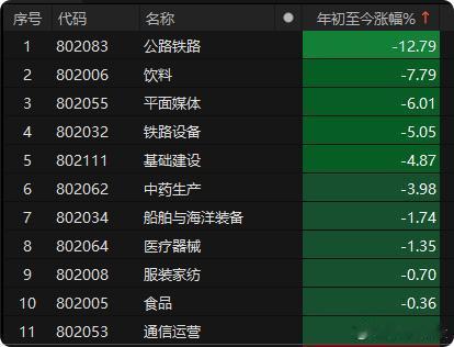 今年以来的板块涨幅榜和跌幅榜,只有11个板块是下跌的,4个板块翻倍了 整体分化