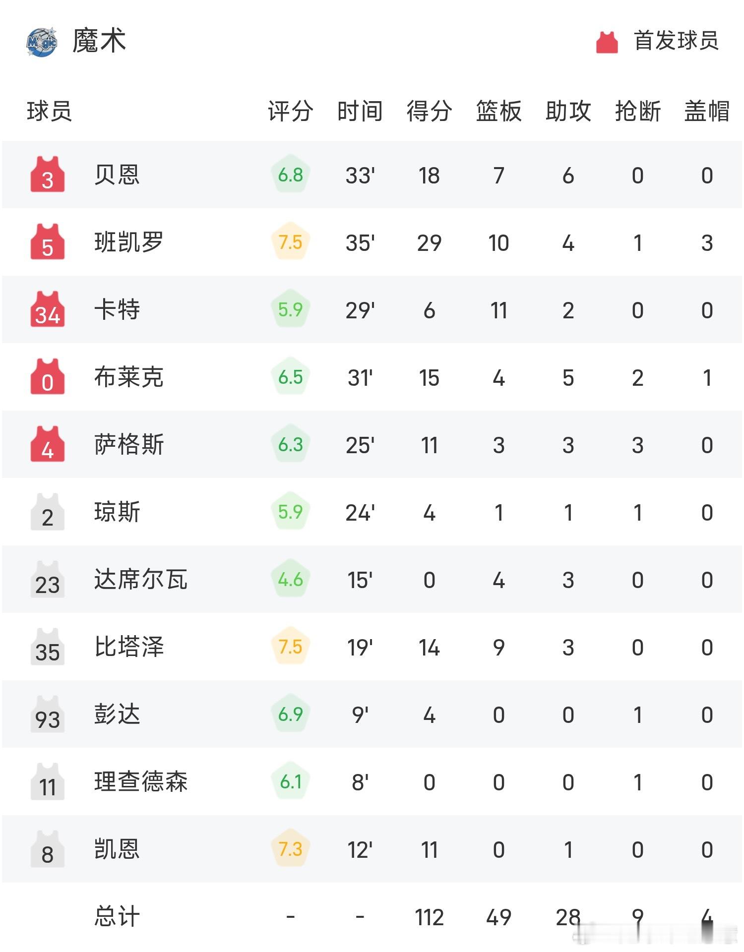 01月01日讯 25/26赛季NBA常规赛展开焦点对决,印第安纳步行者坐镇主场迎战奥兰多魔术。双方鏖战全场,终以步行者110-112惜败告终。魔术核心班凯罗独揽29分10篮板4助攻的全能数据,用一记准绝杀2+1率领球队拿下胜利。首节较量,魔术率先发难。核心班凯罗攻守两端全面发力,单节入账6分5篮板外加2记封盖,搭档贝恩联手打开局面;步行者这边马瑟林状态爆棚,单节飙中3记三分轰下12分,帮助球队在被动局面下紧咬比分。节末谢泼德压哨三分一箭穿心,首节战罢,魔术31-28微弱领先。次节对决进入白热化,双方比分交替上升,领先权多次易主。魔术奇兵贾马尔·凯恩挺身而出,单节独砍11分,携手布莱克稳住阵脚;班凯罗延续稳定输出,半场已揽下13分7篮板。步行者核心西亚卡姆手感滚烫,单节狂轰13分,半场累计18分带队强势反扑。节末内姆布哈德连续突破造杀伤,一度将比分追平。半场战罢,魔术68-66守住领先优势。易边再战,场上对抗强度飙升,火药味渐浓。魔术队布莱克、班凯罗与萨格斯先后领到技术犯规,陷入犯规麻烦。步行者则趁势发力,内姆布哈德与马瑟林火力全开,助力球队实现反超;西亚卡姆延续高效发挥,三节战罢已入账24分。危急时刻,魔术中锋比塔泽化身禁区守护神,接连完成空接暴扣与压哨补扣,单节独得10分,帮助球队将分差缩小至1分。三节战罢,步行者95-94反超魔术。末节决战,比赛进入最高潮,双方比分多次战平,悬念拉满。关键时刻,魔术核心班凯罗尽显球星本色,接连命中干拔跳投与强硬突破,单节再添6分。步行者则依靠内姆布哈德与西亚卡姆的合力冲击,多次撕破防线扳平比分。终场前29秒,双方战至110平。魔术暂停调整后,班凯罗持球强攻打成2+1,只可惜加罚未能命中。手握绝杀机会的步行者,由内史密斯执行最后一攻,无奈投篮偏出,错失逆转良机。此役失利后,步行者主帅卡莱尔的千胜里程碑也将再度推迟。