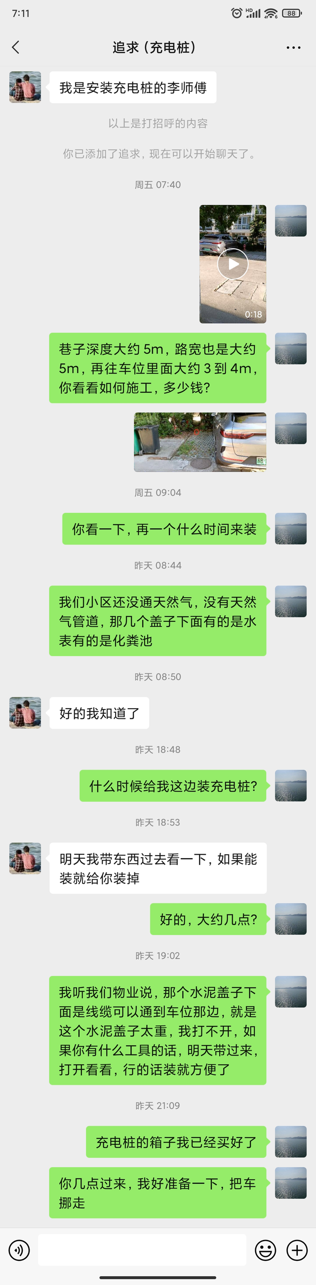 吐槽一下送的这个充电桩 是送比亚迪车主的,但为什么不能给车主自己安装,一定要公司安排的人装,收费太离谱,服务太差劲,爱理不理,你问他大约什么时候来,他就是不理你,白天忙我理解,可到了晚上8、9点之后还有空了吧,12m的槽1800元,我外面联系的人1000元就可以搞定,但安装师傅说自己开槽电线不给我,晕倒,这是什么道理,我一点办法都没有,只能让他来装,穿的线管,线管与线管之间没有接头,那穿线管干什么,雨水之类的依然能进去,快到充电箱的时候都不愿意穿线管,开槽开的不直,量的时候一定要按弯曲的量,我的天,弯曲是你自己造成的,为什么这么说,他说人不可能搞得很直,但你连直线都不划,当然布置了,做事太粗糙,收费还贵,我不知道公司怎么想的,希望比亚迪能改进服务质量,这恐怕就是活外包之后的后果。车子开着还行,就是刹车有的时候会感到一些震动,其他没什么,在外面充了一次电。