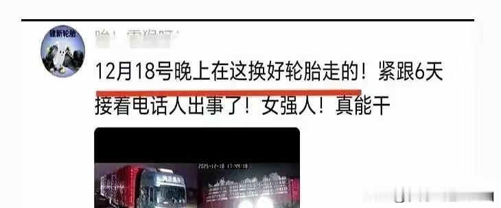 “半挂西施”王迪今年36岁,安徽萧县人,她在路上发生事故,再也回不去了,遗体都是曾经帮助过的几个卡友用她的卡车运回去的,事故的主要原因,就是新疆高泉路段的“地穿甲”,连续大雪后路面结冰如镜,重载的半挂突然失控撞了护栏。 新疆的冬季,风像刀子,雪盖住路标,冰层藏在积雪下——当地人管这叫“地穿甲”,车轮一压就打滑,刹不住,也躲不开。这样的路况,连经常跑新疆的男卡友都要避开,王迪之所以冒险,就是为了快点赚钱付父亲的医药费。 她出事前6天还特意花大钱换了全套新轮胎,就为了应对冰雪天,当天她还和修车店的老板说:“跑完这趟,就可以把医院的费用交清了。”她还和母亲发微信说跑完这趟息冬了,还说要回家吃母亲包的饺子,满心都是安全赶路,但是再防寒抗冻的轮胎,终究抵不过新疆的恶劣天气。 12月23日,她再次接到新疆货运的任务,本以为是普通的一天,没想到路途中正逢大雪天气,大雪下面又是结冰,行车途中车辆打滑直接撞在护栏上,驾驶位被撞了严重变形,王迪不幸遇难,遇难当天距离他车子换新轮胎才有6天。连换轮胎的修车司机知道她出事了,都都忍不住发朋友圈感叹说:“12月18日在这里换好轮胎走的,紧跟着6天接着电话人出事了,女强人!真能干!” 王迪真的不一样,三年前,她还是奶茶店老板,但是因为生意不好,加上父亲成了植物人,她又有两个孩子需要养活,上有老下有小的她决定转让奶茶店,然后去干一群粗糙男人跑的货运,而且她选择了一条连男人都害怕的江浙新疆路线,就为了能赚钱快一点。 三年多时间,这姑娘硬是攒下了三台陕汽X6000重卡,懂行的人都清楚,一台X6000落地少说五六十万,三台车意味着什么?意味着这个年轻女孩靠自己的双手,在男人主导的货运江湖里杀出了一条血路,但是她依然坚持自己跑路,三年来一直没有松懈。 有人说她靠颜值,其实她靠本事。路线熟,信息准,常在群里发路况,谁车出故障,她愿意停下帮忙。可再能干,碰上雪覆路面,护栏不会让一步。她换胎不到一周,刚把车况整好,想着这回稳稳到家。但是连续大雪后路面结冰如镜,她终究没有逃过这个劫难。