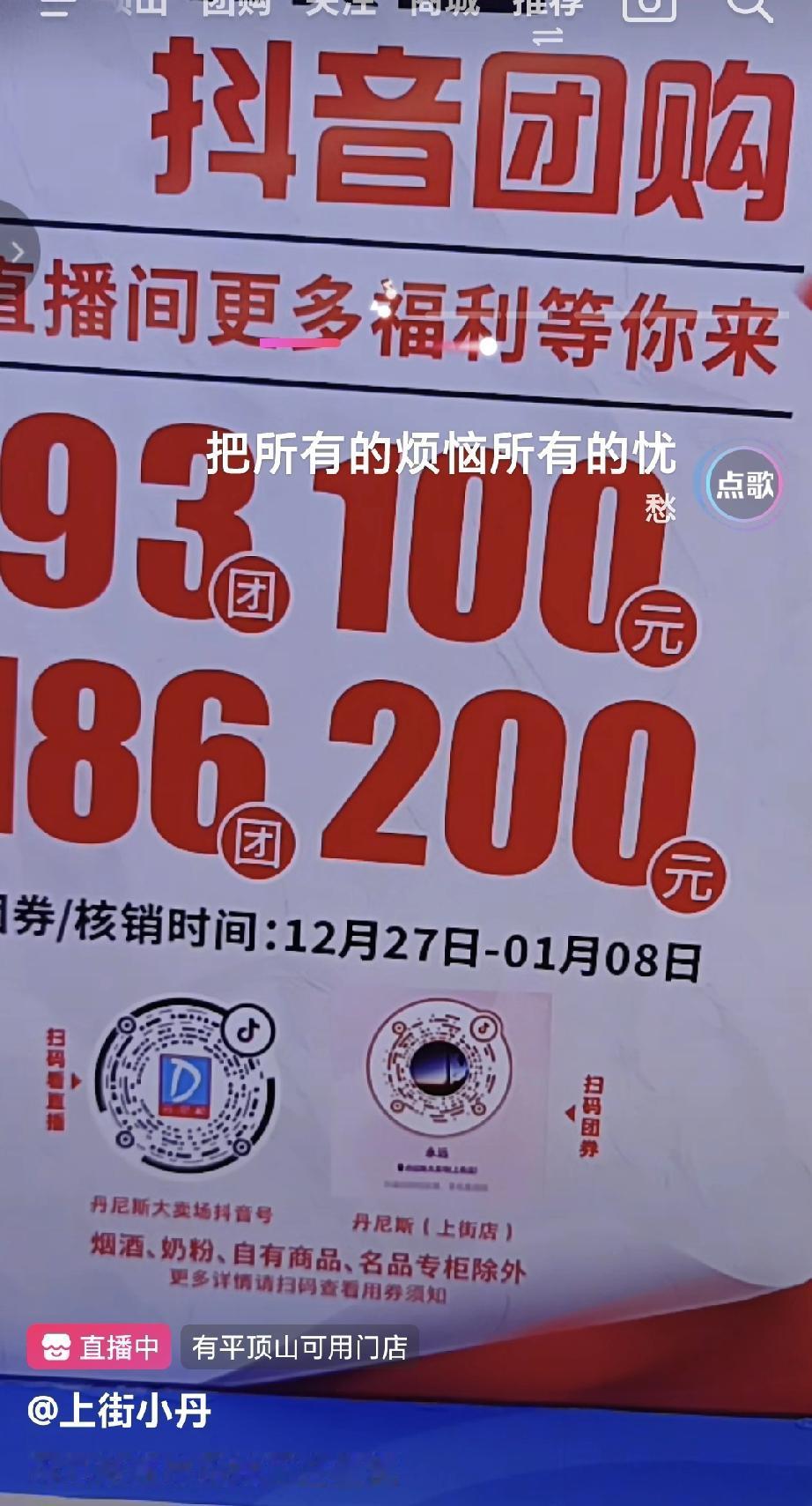 今天是2026年的元旦,看到这样的直播场景,感觉这店的经营应该是出了问题了 早上在抖音上看到这家知名的商超在直播,看内容在直播间购买93元的券,到店可以当100元花,购买186元的券,到店可以当200元花,全省门店可通用。 说实话,现在我已经对这样的所谓优惠免疫了,这种诱导消费者多购物的套路,的确是令人厌烦。而丹尼斯作为河南省内一家知名的商超,没有想着办法地去提升服务,去提升商品品质,给消费者提供货真价实一个放心购物的场景,却经常性地用这样的招数来诱导消费者,实在是和其名声不相符。 这看着是给消费者的优惠,实则反映出来的是经营不理想的直接表现,而利用这种所谓的购券优惠,又是对消费者的诱导和不尊重。 丹尼斯,作为省内一家知名的商超,真应该好好学学胖东来的经营理念,看人家是用什么样的服务、品质来吸引广大消费者的!