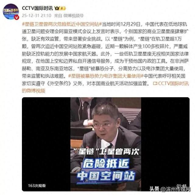 当地时间12月29日,中国代表在低地球轨道卫星问题安理会阿里亚模式会议上发言时表示,个别国家的商业卫星星座肆意扩张,缺乏有效监管,带来显著安全挑战。