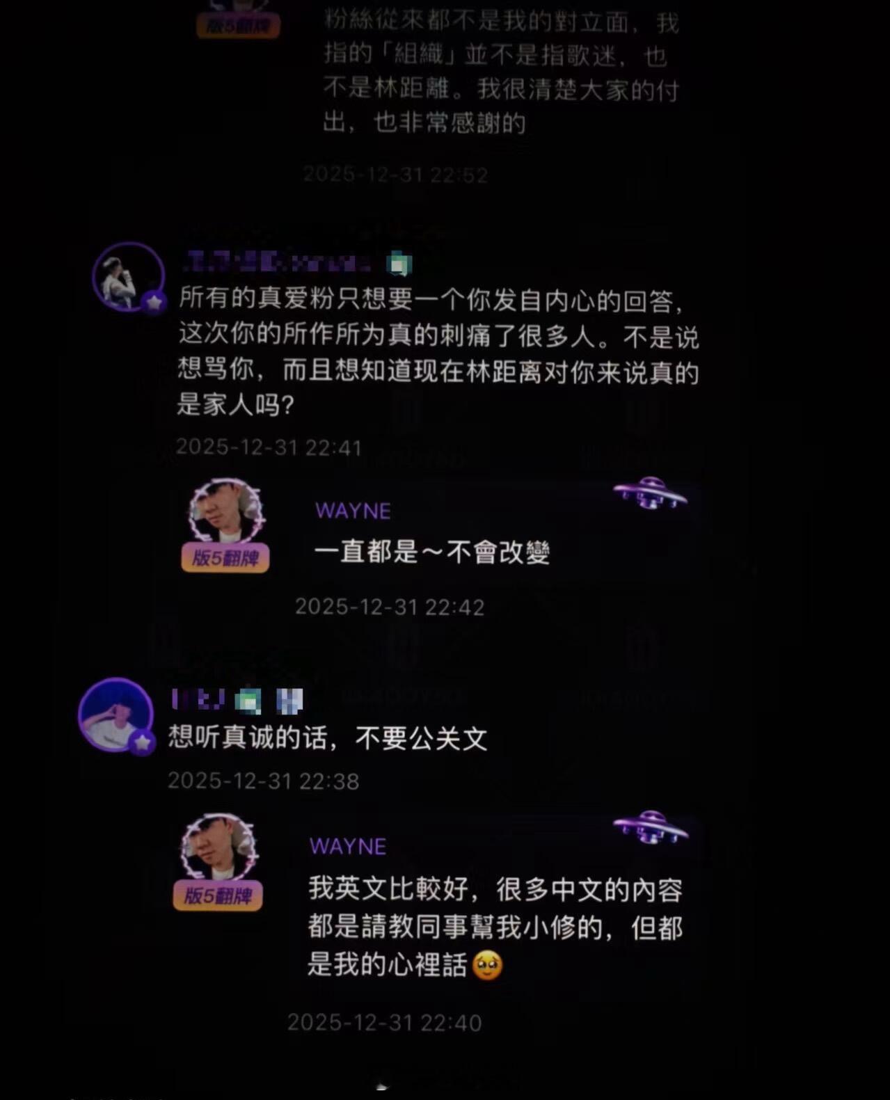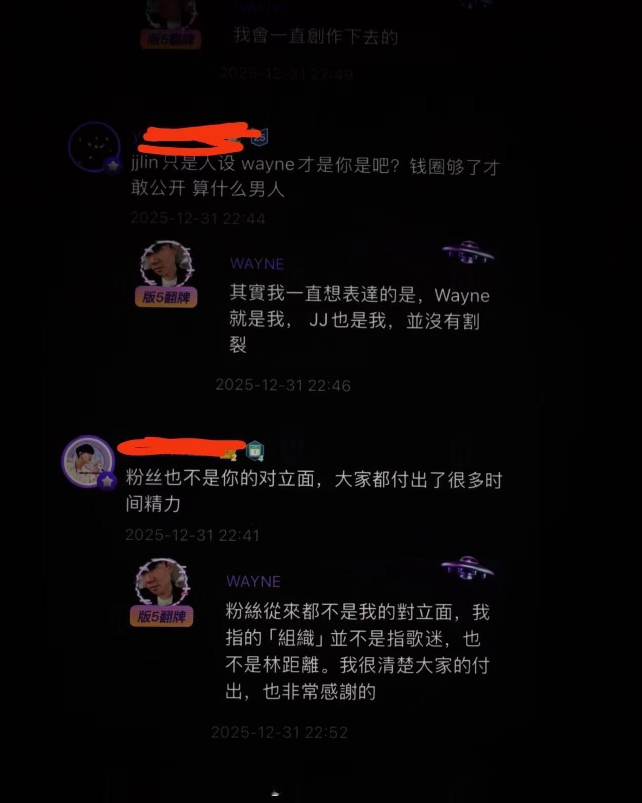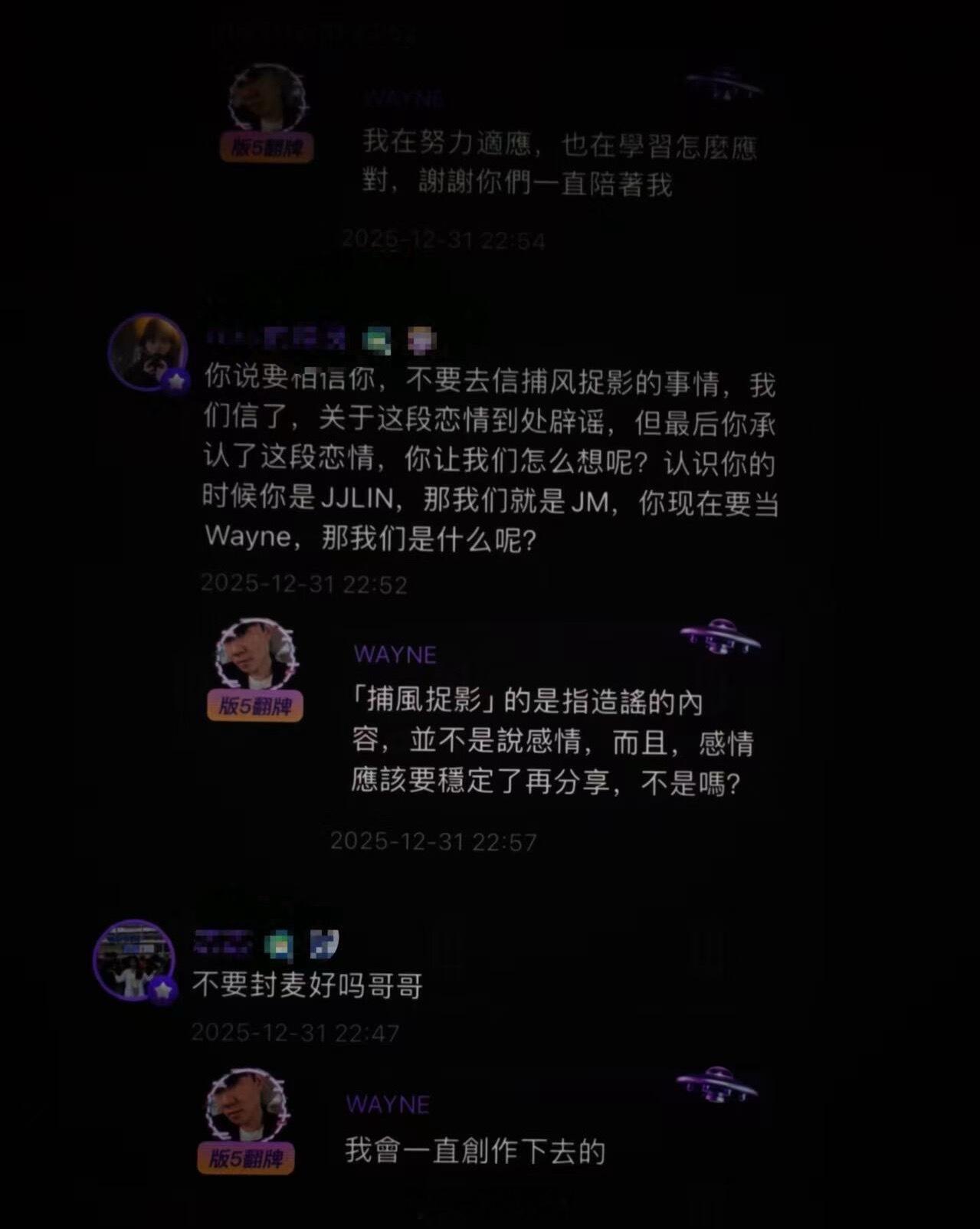 再听林俊杰那些情歌感觉变味了 林俊杰上次翻牌粉丝是在25年除夕夜,也是因为七七出