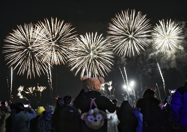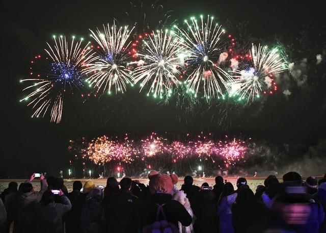 观众还在海边共同见证“东风夜放花千树”迎新烟花秀,共迎新年到来。