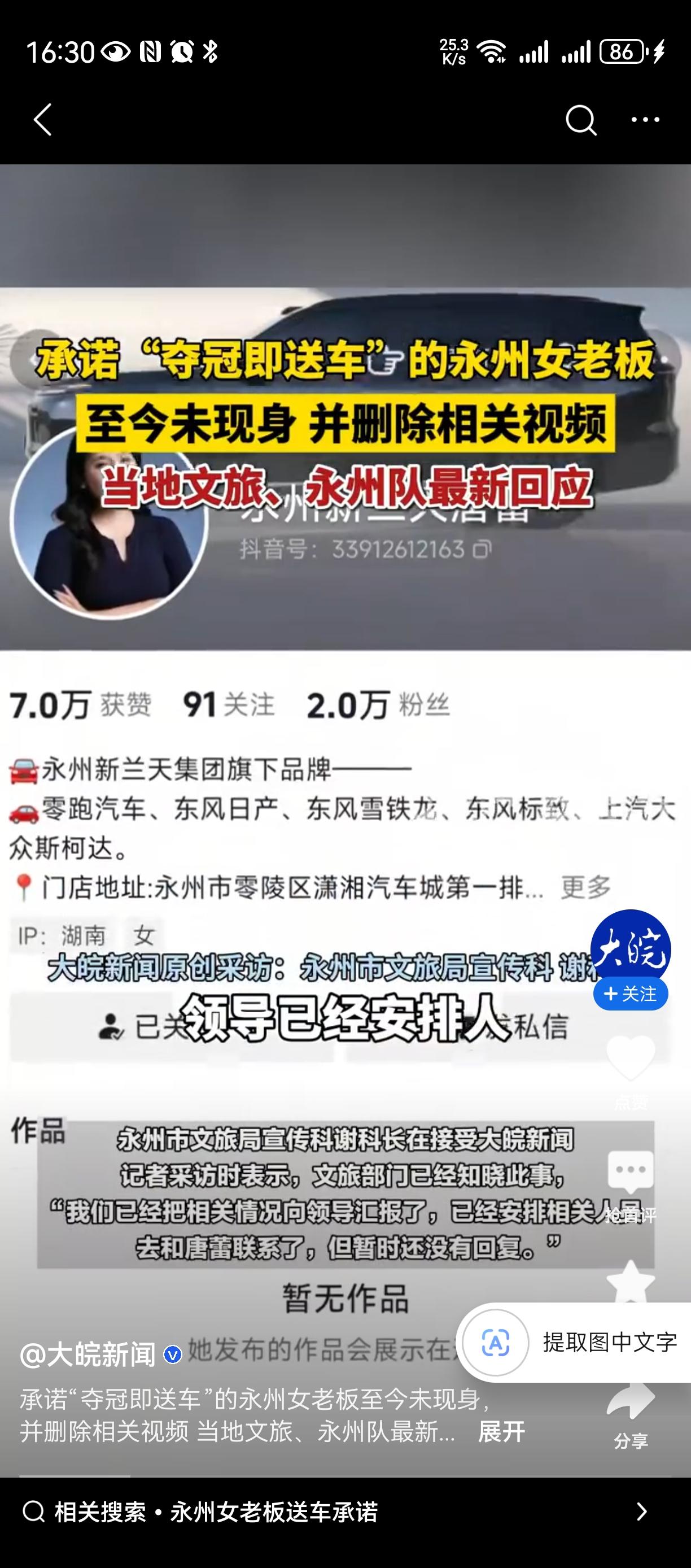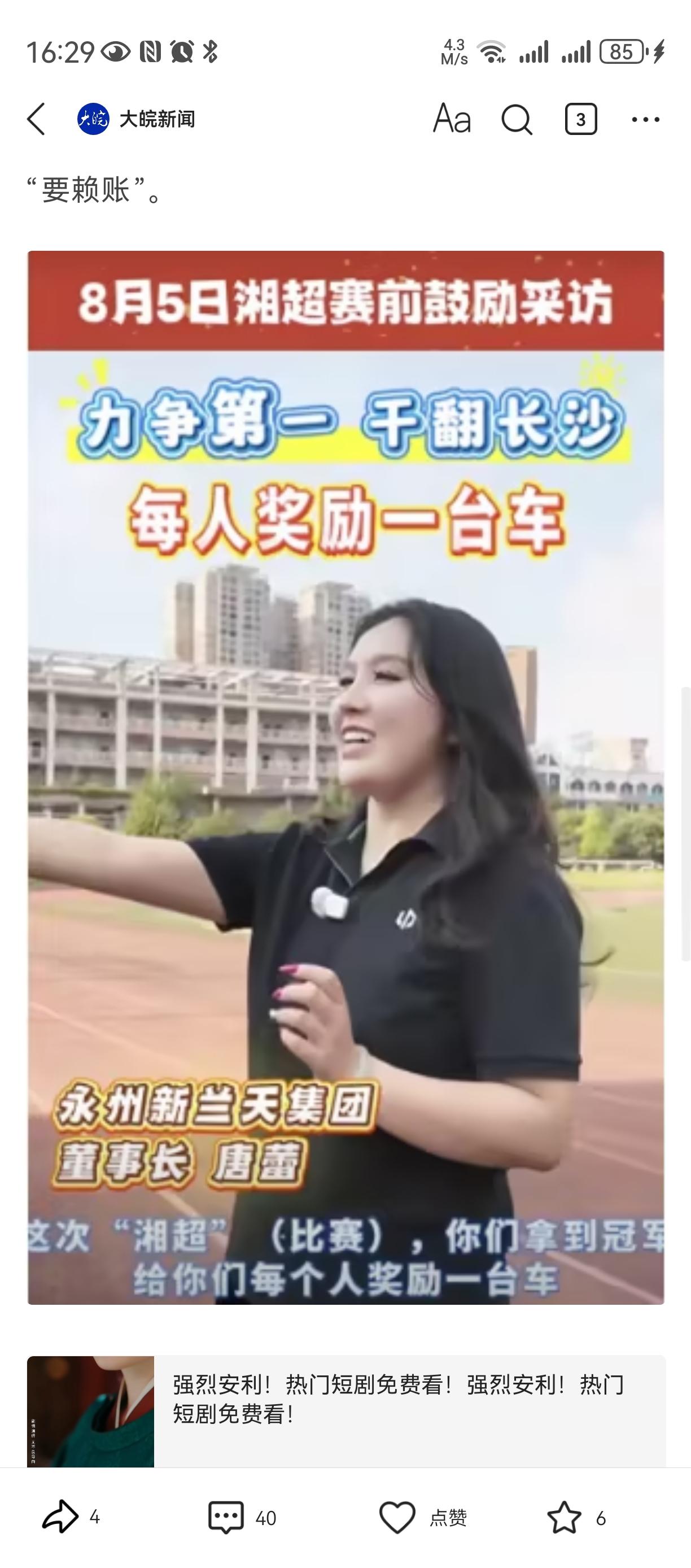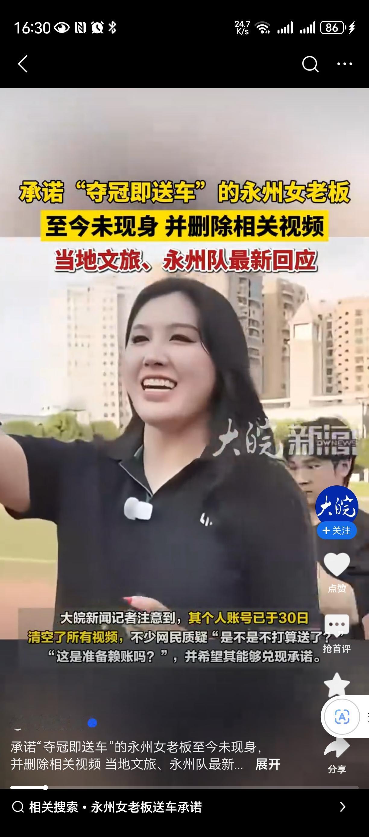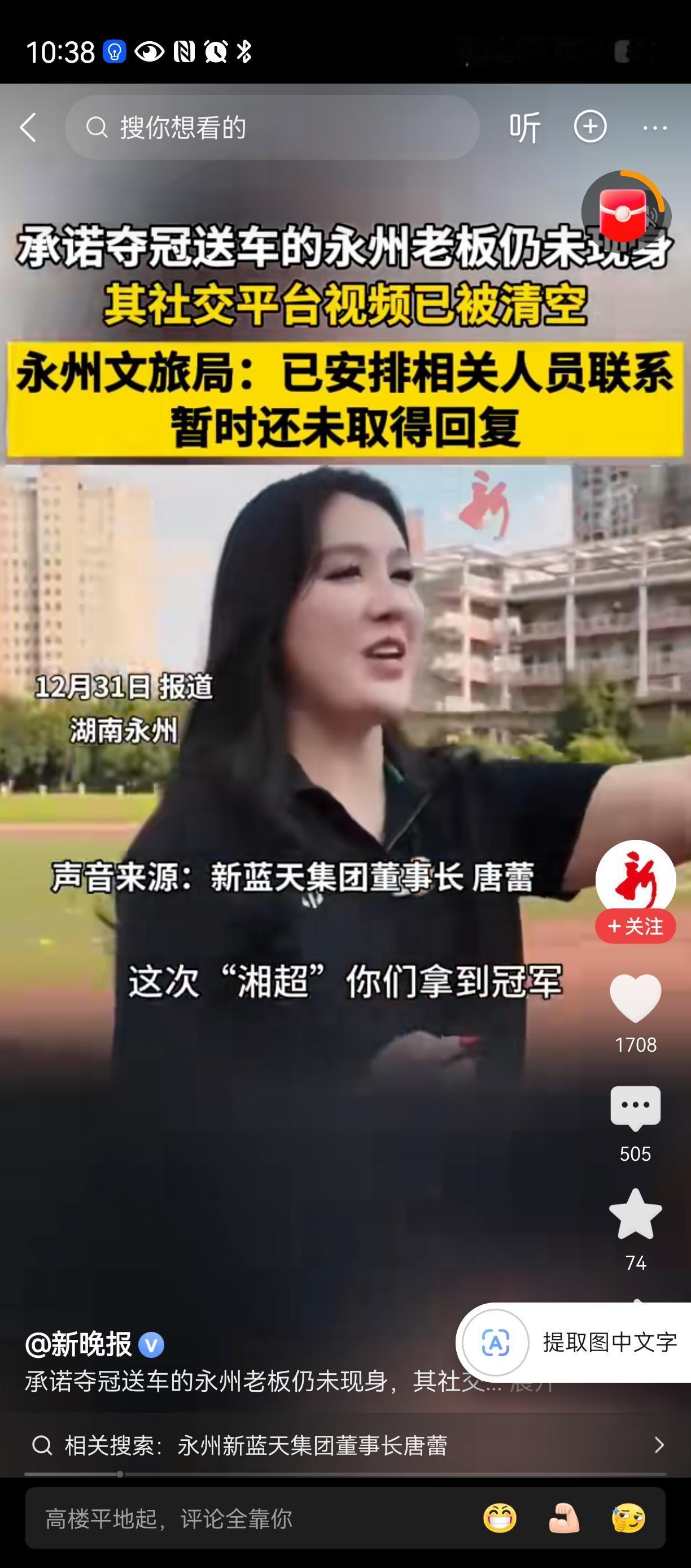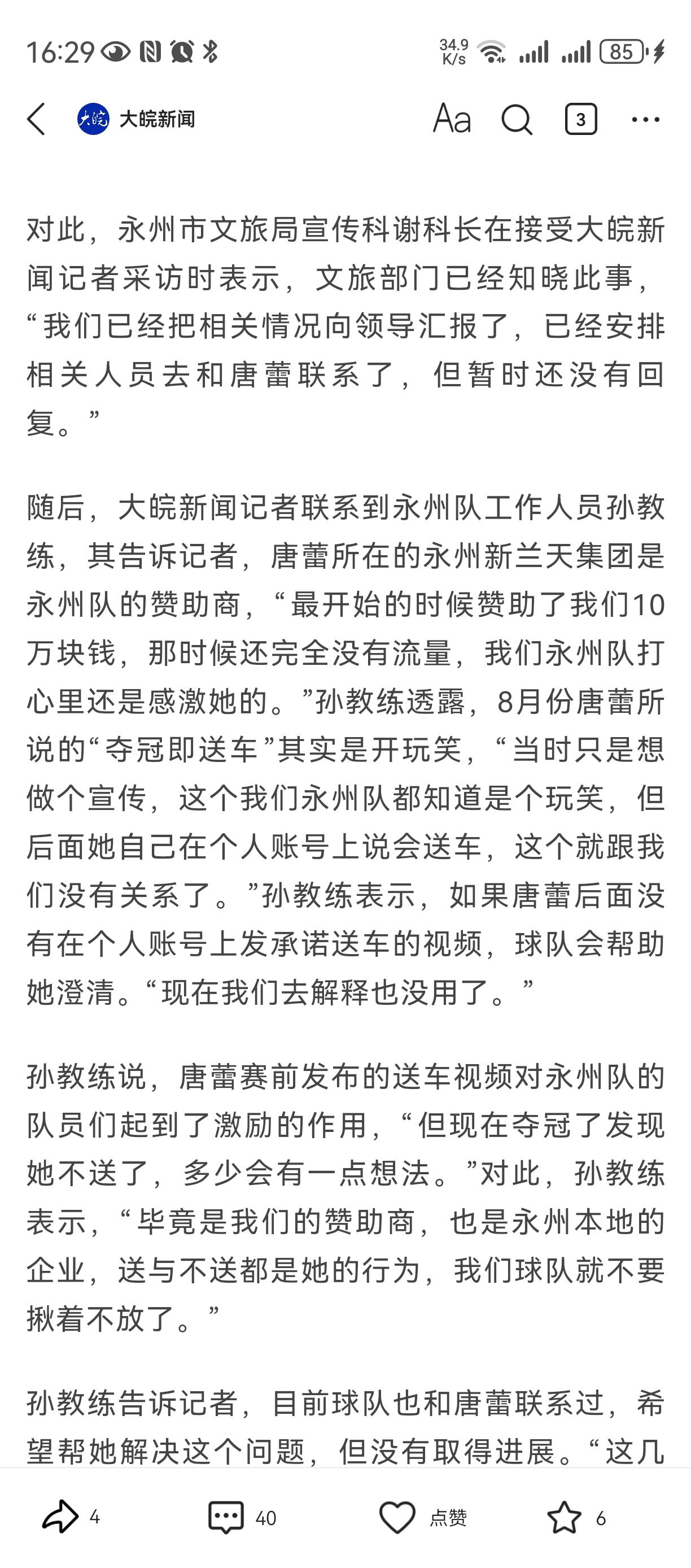 永州新兰天董事长唐蕾,太抠门了!承诺给夺冠永州队送车,如今不敢承认、吓得躲起来了