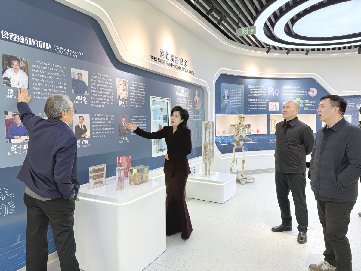 12月31日,郑州大学第一附属医院韩新巍教授带领团队走进郑州大学人体科学与健康科普思政基地(代谢紊乱与食管癌防治全国重点实验室科普馆),开展了一场别开生面的参观交流活动。本次活动以“展板上的人物走进展馆”为主题,让长期展示于科普展板上的医学专家“走出”展板,走进公众视野。