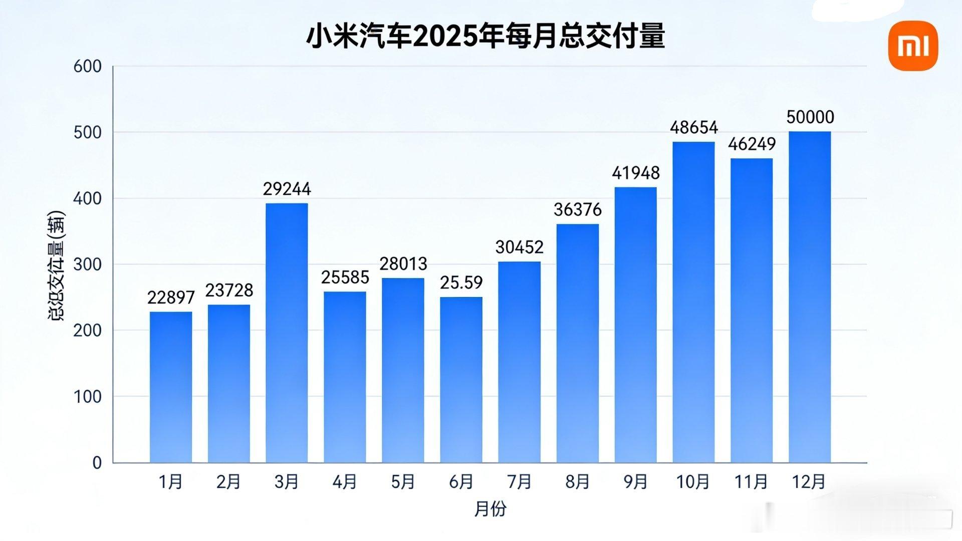小米汽车12月交付量超5万台25年交付量超过411,625辆