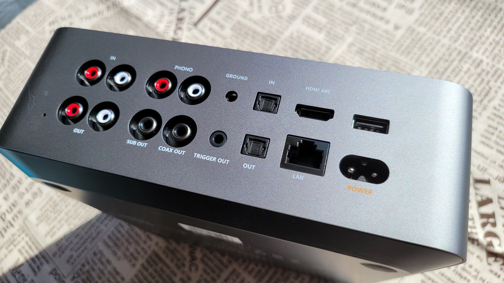 与其丰富配件相对应的,是机身背面那无比丰富的输入输出接口,这也是我将Wiim ultra称之为超值流媒体设备的主要原因。除了流媒体软件经wifi投送至机器本身进行解码播放的输入方式外,Wiim ultra还支持蓝牙、HDMI ARC、线路输入、光纤输入以及唱机输入的丰富输入方式可供选择,输出方式更是多种多样,线路输出、光纤输出、同轴输出、耳机输出、蓝牙输出以及DLNA输出。