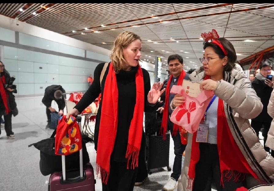 2026年元旦清晨超有排面!随着中国国航CA966航班降落,德国、阿根廷、巴西、韩国等多国游客抵达首都国际机场T3航站楼,成为首批来京入境游客。 一下飞机,憨态可掬的“北京礼物”马墩墩人偶就把大家吸引住了,游客们都抢着合影。德国游客Moriz之前在北京生活学习过,这次看到合适航班就立马买票来了。 北京市文旅局还送上“来京大礼包”,有冰雪旅游线路、旅游攻略等,还整合了企业优惠。2025年北京入境游客量超500万,首都机场航线覆盖广,2026年还会有更好服务,这旅游市场不得越来越火!