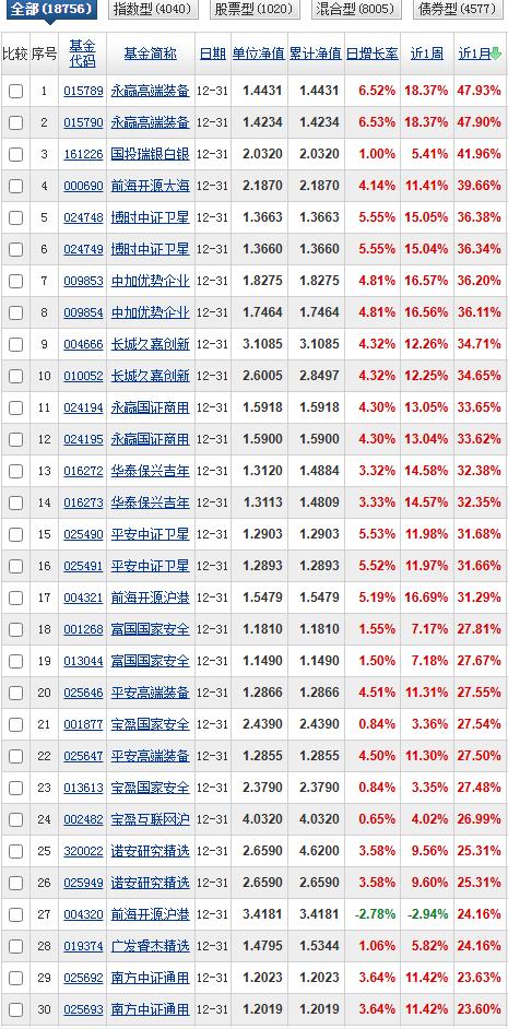 三月榜和一月榜轮流坐庄的是国投瑞银白银期货和永赢高端装备智选,前者是贵金属白银板块后者是商业航天板块。 三月榜国投瑞银白银期货以62.43%的收益率高居第一,永赢高端装备56.42%排名第二,但第三的长城久嘉只有37.13%,前两名可以说是断崖式领先! 一月榜永赢高端装备47.93%排名第一,国投瑞银白银期货41.96%排名第二,前海开源大海洋39.66%排名第三。永赢一个月收益率居然有恐怖的50%,也就是说持有10W本金一个月收益接近5W,持有5W本金一个月收益也接近2.5W。这个确实太恐怖了!