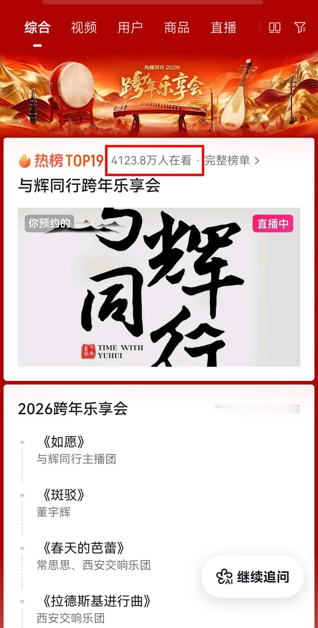 12月31日《与辉同行2026跨年乐享会》圆满落幕,整场26个节目精彩纷呈,董宇辉登台独唱两首歌,嗓音温柔又有力量,唱进了人心坎里。这场由直播间共创的跨年盛宴,收官时观看人数直冲2738万+,这个数字真的太亮眼了。 没有华丽的噱头,没有流量堆砌,全靠诚意和质感出圈。董宇辉从来不止是主播,他总能用真诚打动人心,唱歌时的专注,舞台上的从容,都让人看到不一样的光芒。 好的舞台从不需要刻意造势,用心的作品和真诚的人,永远自带光芒,这大概就是大家偏爱他的原因吧。