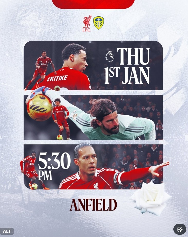 新年首战!利物浦官推晒对阵利兹联海报:范戴克、阿利松等出镜