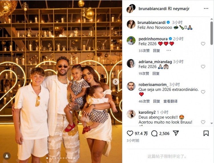 内马尔的伴侣为照片配文:“新年快乐”