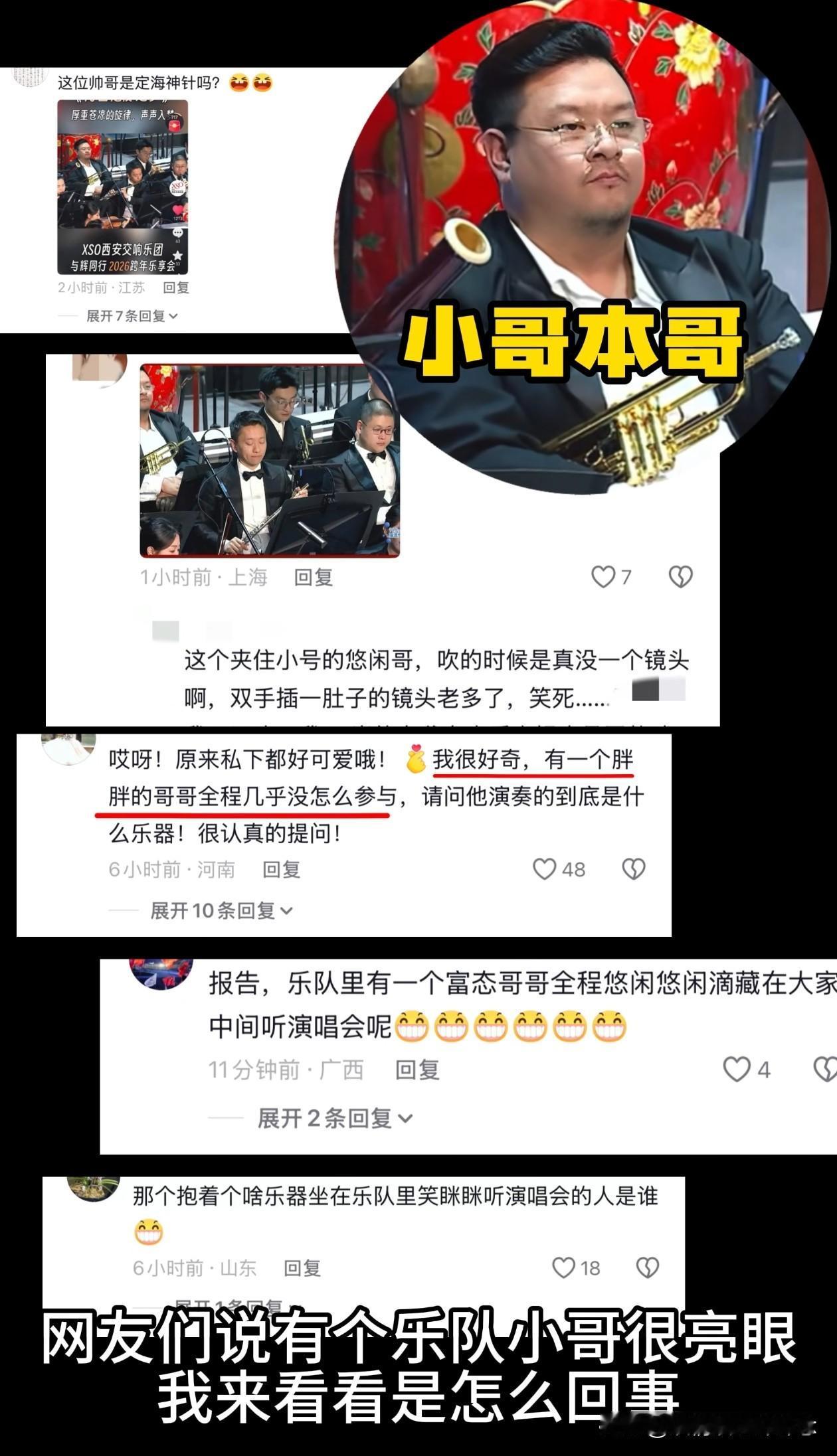 “与辉同行”跨年音乐会有人摸鱼, 已经传到他工作单位了, 西安交响乐团直接把他揪了出来, 让大家看看他在干嘛。 整个乐团都在各司其职,这个员工一直稳稳的坐在自己的“工位”上,一动不动,有个镜头,好像是眯眼睡着了。 网友调侃:“这个人是替补吗?” “这哥们憨态可掬,是不是晚会的吉祥物?” 摄影师也挺调皮,还专门给他镜头,看看小提琴首席,再看看他,也太稳了,就像一台手术里麻醉师的感觉。 不过,最后西安交响乐团为他澄清了,其实有好好工作。他可不是摸鱼划水,只是分工有别,该发力时精准输出,该待命时纹丝不动,就是这么“稳”! 大家注意到这位“乐团最稳打工人”了吗? 董宇辉