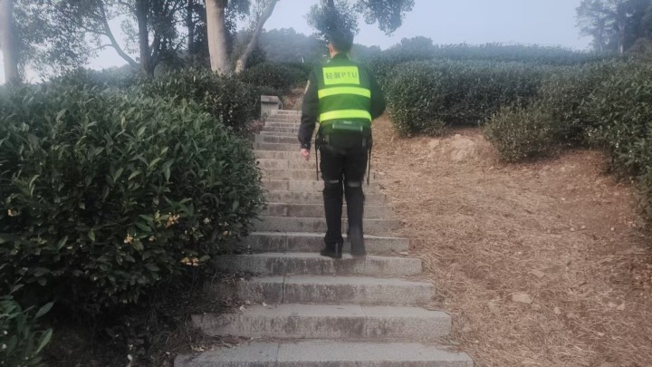 随后,九溪派出所副所长温泽锋、民警邵雄来以及辅警郑嘉文、胡渊,携带上了救援装备,前往报警人小李的所在地点五云山。此时天色渐暗,山林气温骤降,刮起了寒风,能见度也越来越低。救援人员打着手电筒,在丛林中艰难跋涉,不放过任何一处角落,全力展开拉网搜寻。