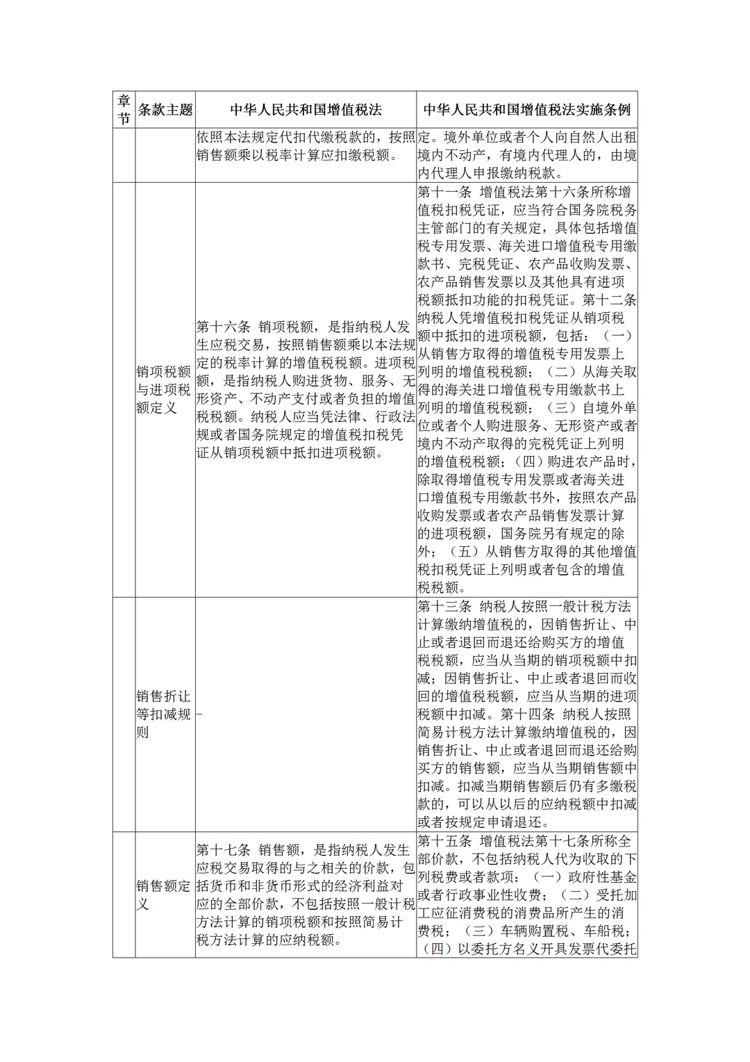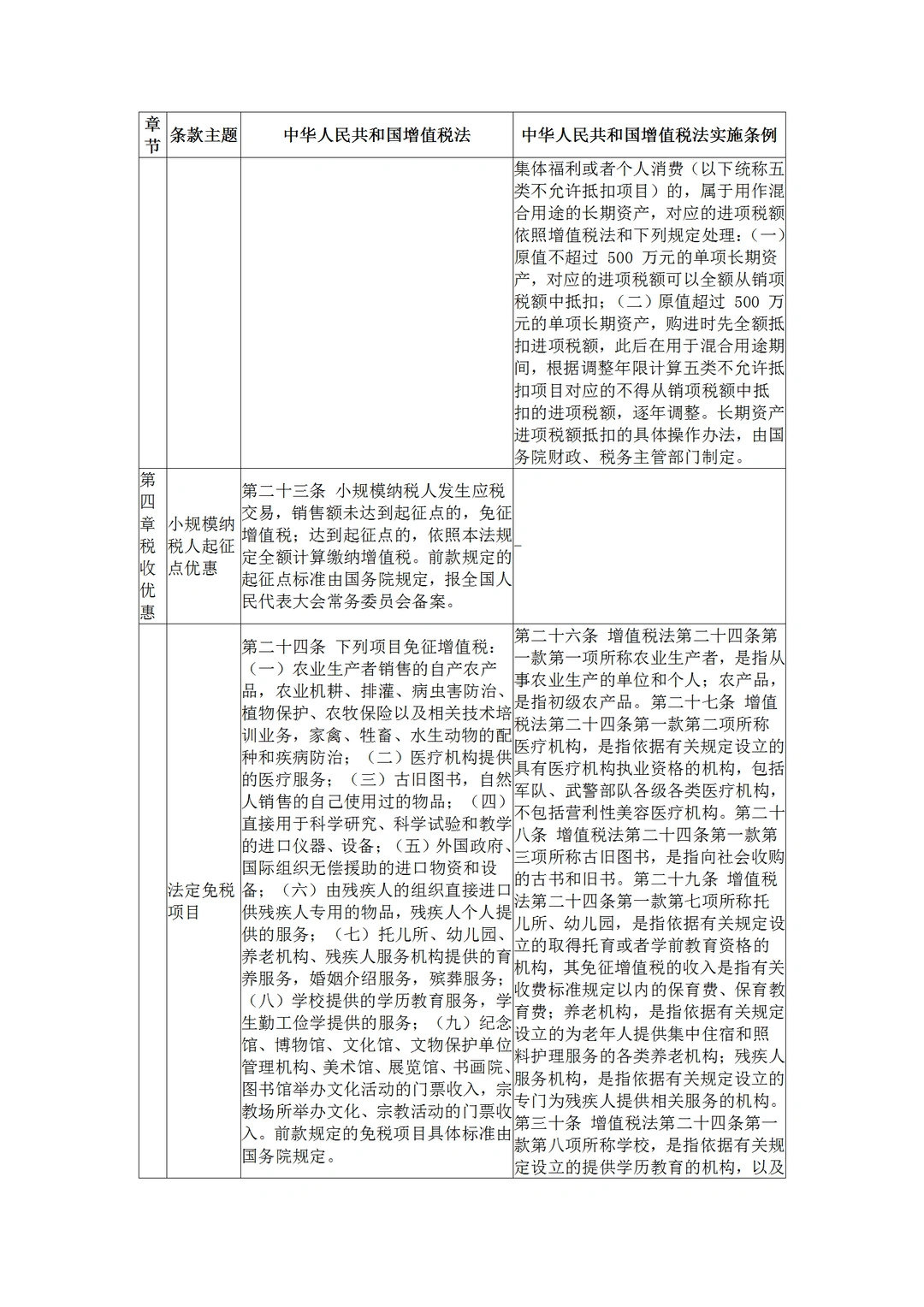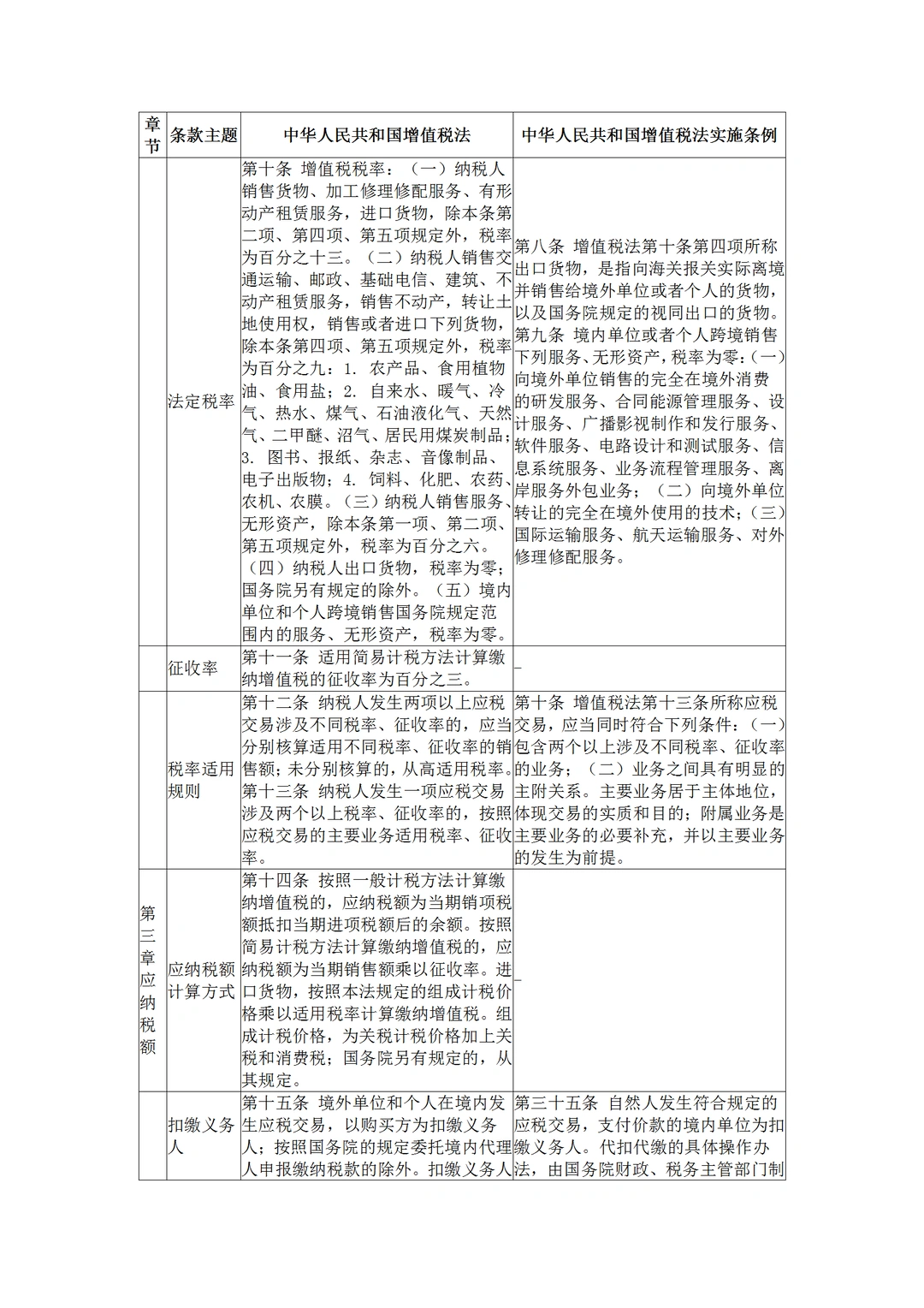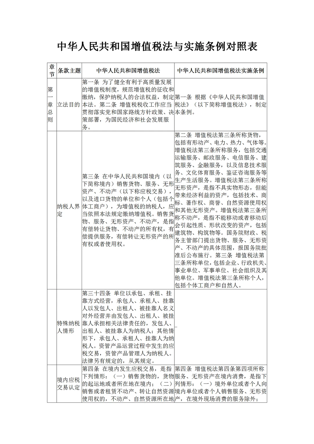 中华人民共和国增值税法与实施条例对比