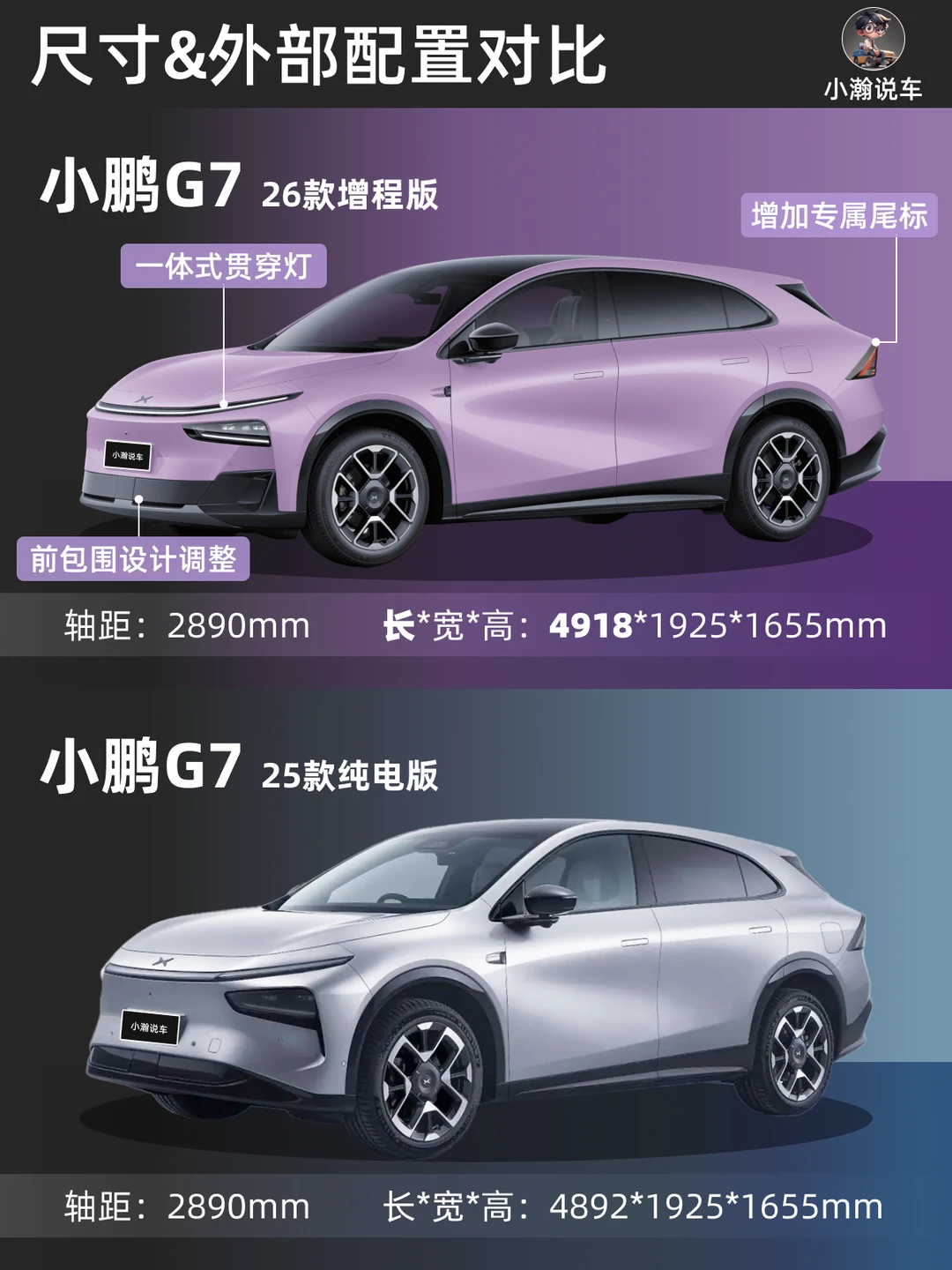 25年上市的小鹏G7即将发布增程版本,目前曝光的升级亮点如下: