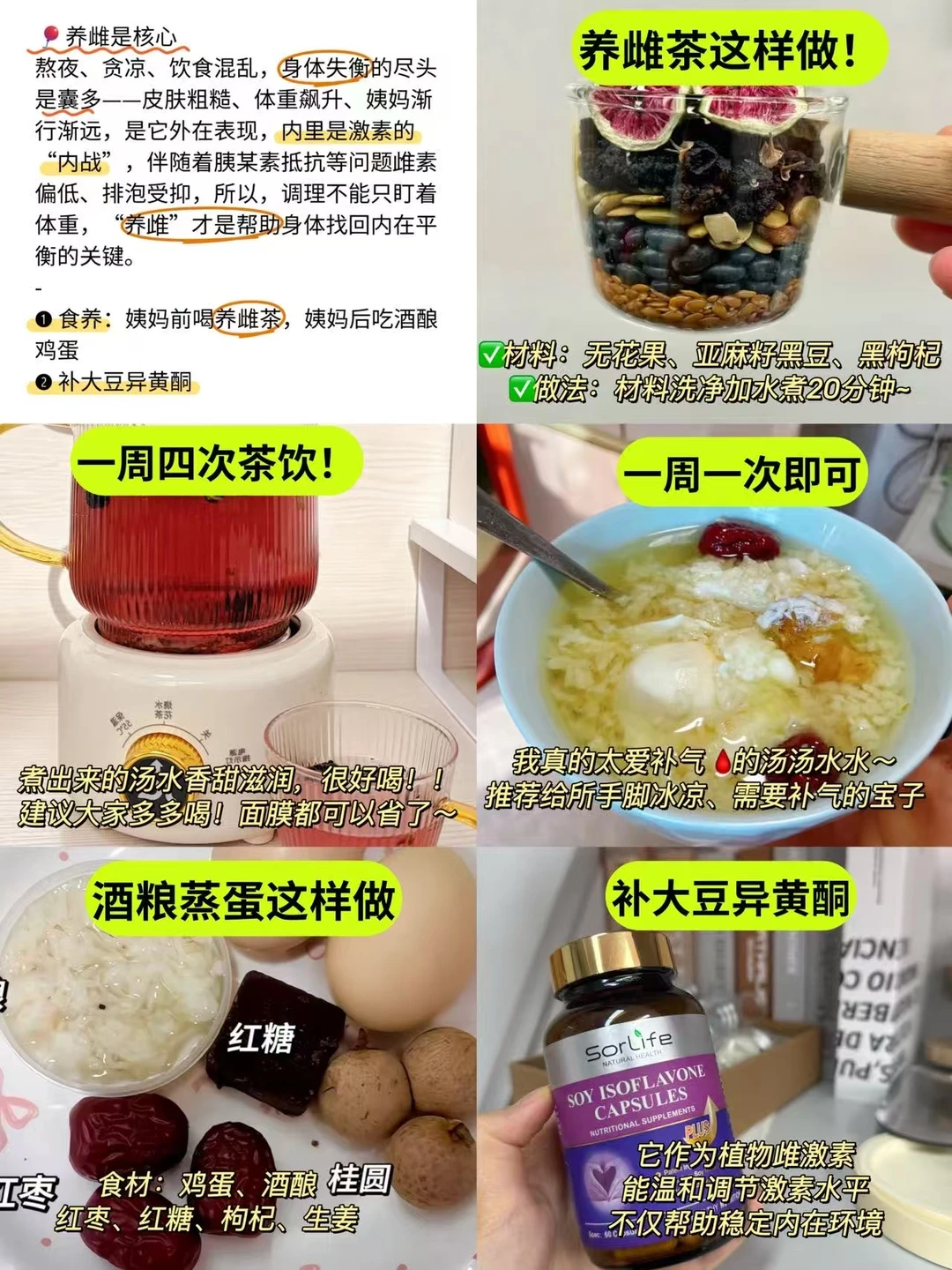 ❶ 食养:姨妈前喝养雌茶,姨妈后吃酒酿鸡蛋
