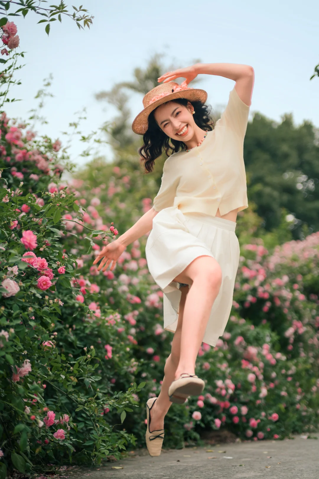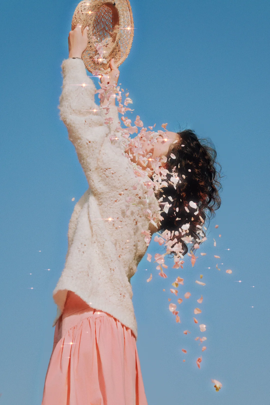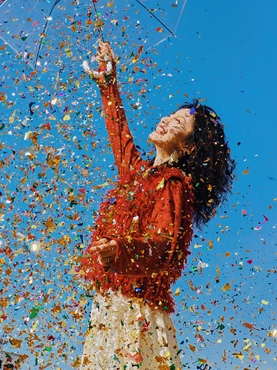 这组照片只要满足蓝天、低机位、大量亮片就可以拍出来,困难的点在于拍完扫地累惨了哈哈哈