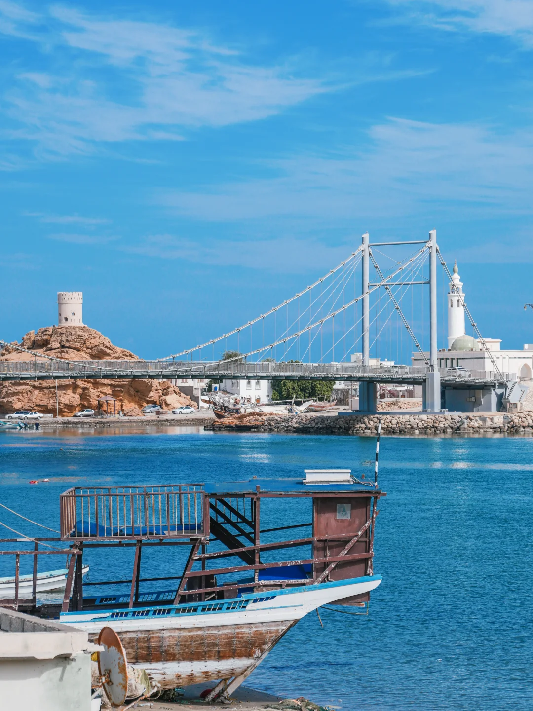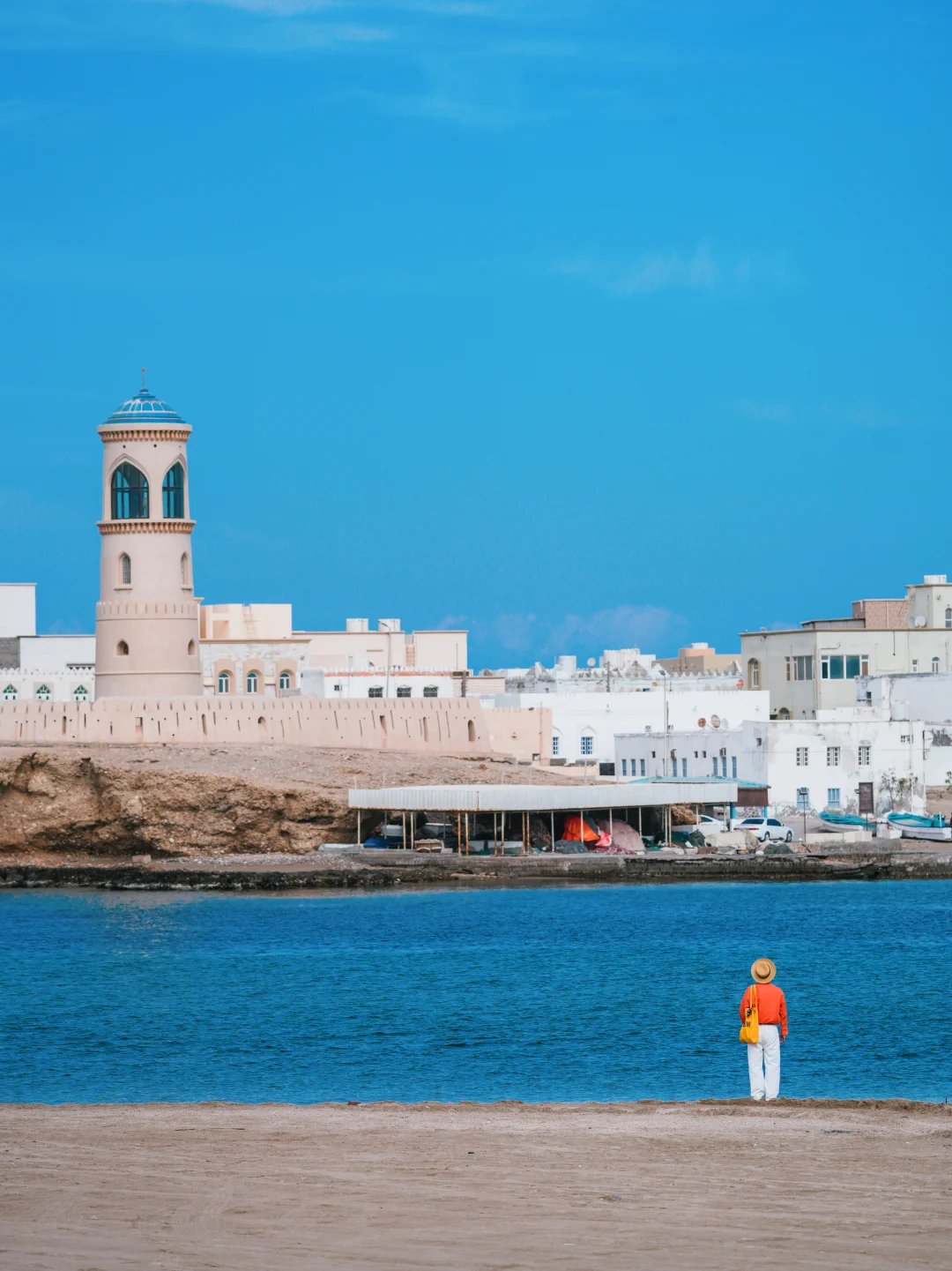 来到苏尔,真的会被这座小城惊艳的说不出话来,融合阿拉伯与波斯风情的白色房屋与蓝色海湾相映成趣,纯净到了心坎里。