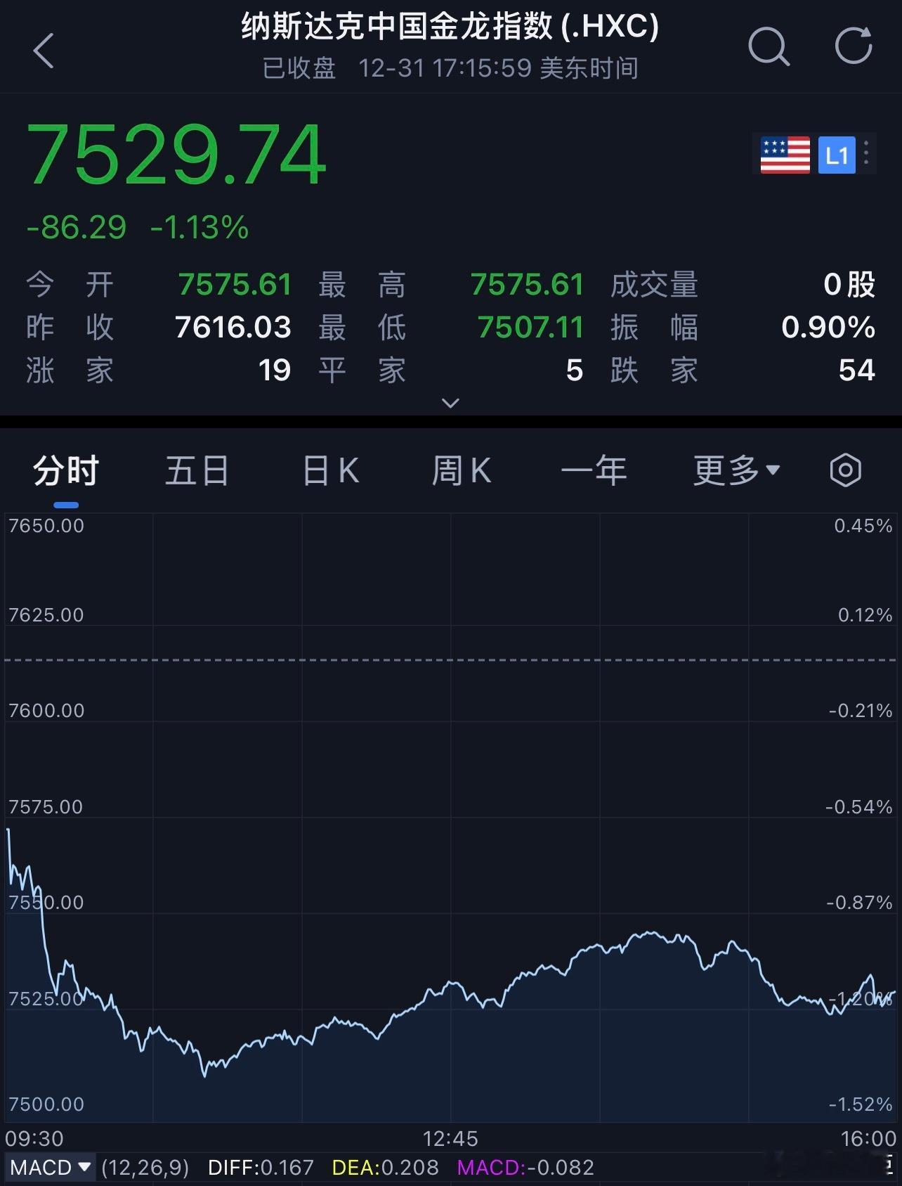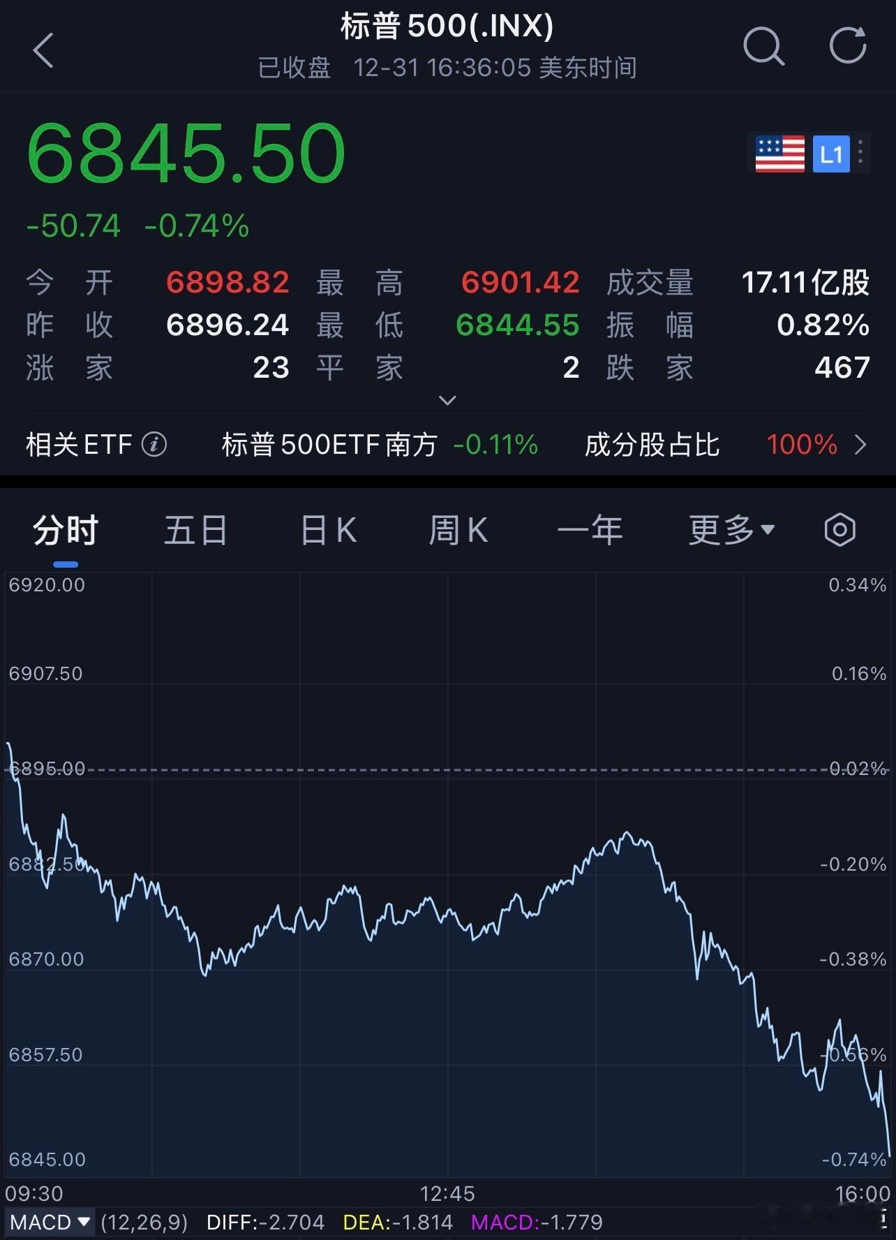 每天早起打卡老板们早安,打卡养铁咯昨夜美股市场延续了圣诞节后的回撤行情,三大指数集体收跌,为2025年画上了心碎的句号。截至收盘,标准普尔500指数跌0.74%,报6845.5点;纳斯达克综合指数跌0.76%,报23241.99点;道琼斯工业平均指数跌0.63%,报48063.29点。从全年表现来看,经历4月的颠簸后,标普500指数依然录得16.39%的全年涨幅;纳指险守20.36%的年度涨幅,达成连续三年“涨20%+”的成就。道指全年上涨12.97%。❗️科技“七巨头”中除了谷歌和英伟达外,其他5家在2025年均跑输基准指数(图4)。中概股也在年末低调收官,纳斯达克中国金龙指数昨夜收跌1.13%,全年累计上涨11.33%。❗️在芝商所一周内第二次调高保证金的冲击下,白银期货大跌9%,拖累黄金走弱。