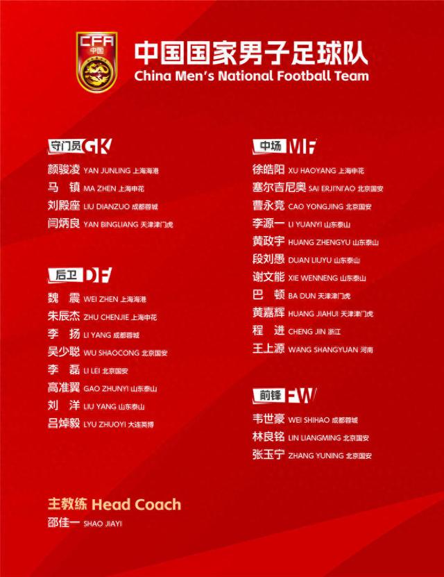 由于U23国足将在1月赴沙特阿拉伯参加U23亚洲杯,本期国足集训并未招入王钰栋、胡荷韬等23岁以下球员。集训名单中,张玉宁、韦世豪、朱辰杰、塞尔吉尼奥等主力球员在列,李扬等四人则是首次入选。此前担任国足队长的王大雷未进入名单。