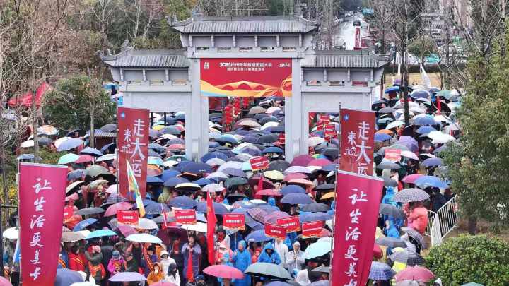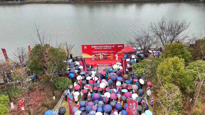 1月1日上午,2026杭州新年祈福走运大会暨拱墅区第20届健走活动在运河边盛大开启。