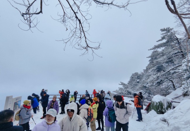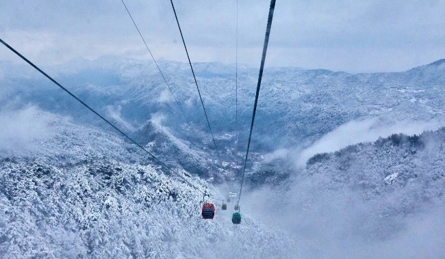 当日的天柱山银装素裹,雾凇满枝,宛若仙境。