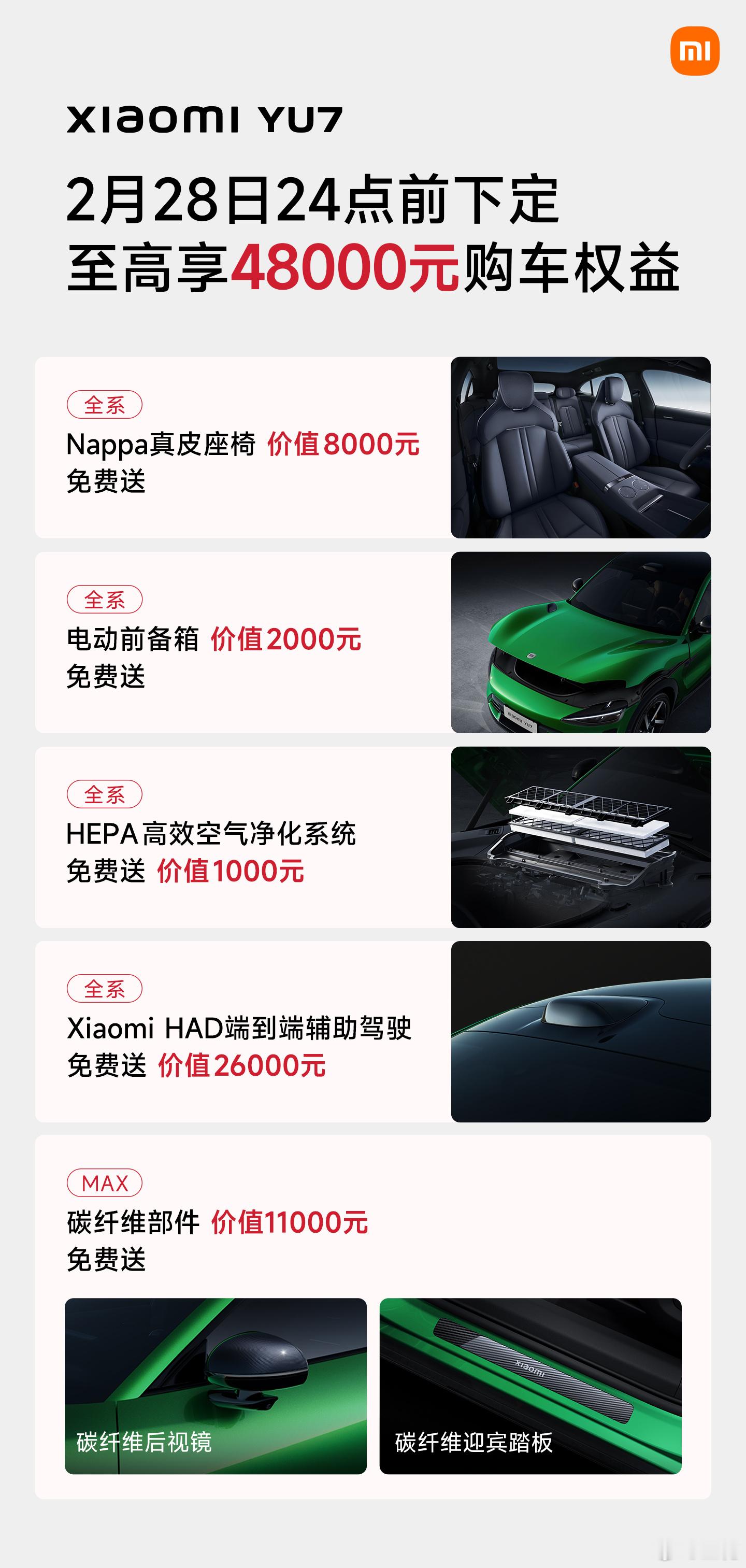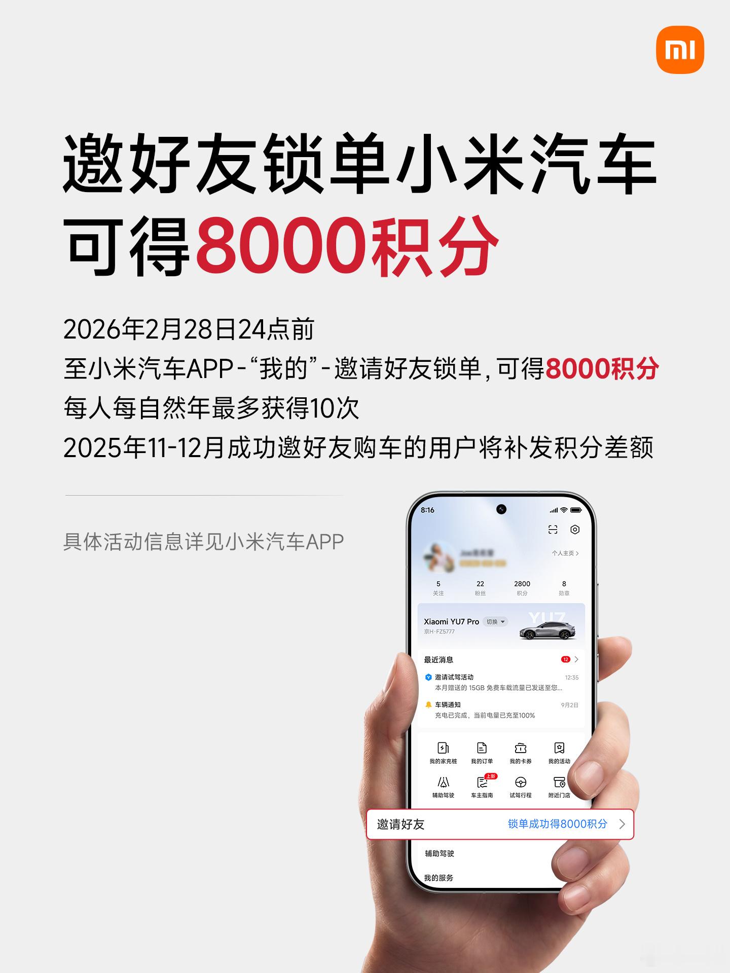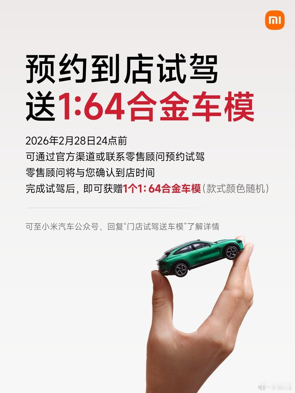 新年购新车,小米YU7 全系可享「3年0息」!首付7.49万元起,月供低至4961元起,2月28日24点前 下定即可享受。同时,2月底前下定YU7,可享48000元限时购车权益。预约试驾送合金车模,邀请好友锁单可获8000积分。感兴趣的朋友一定不要错过,欢迎大家元旦假期到店体验。