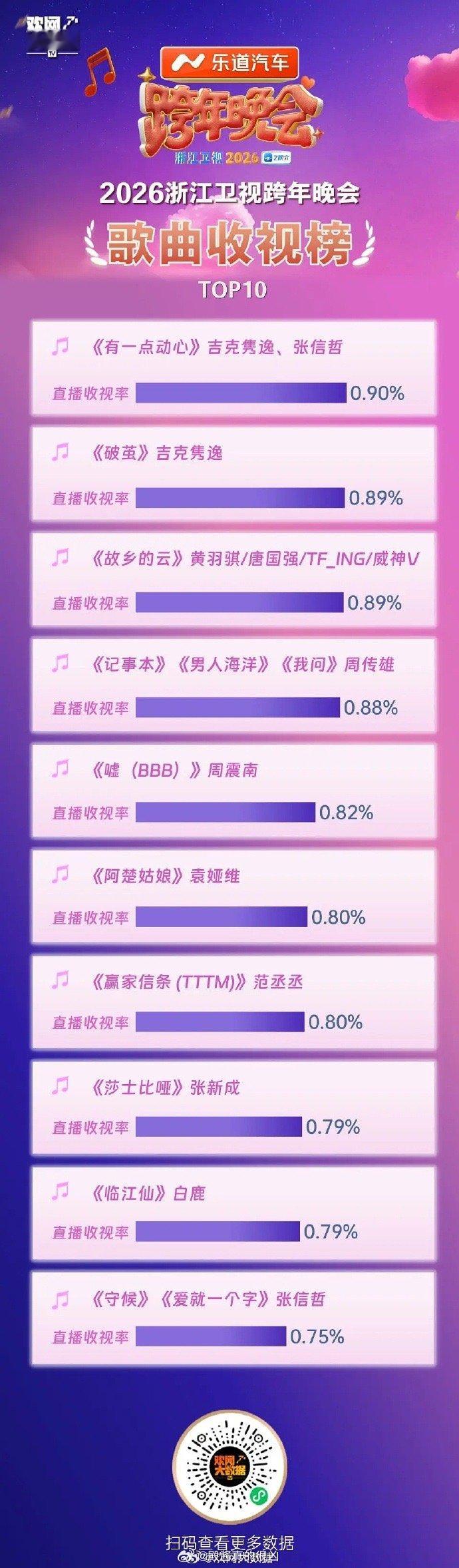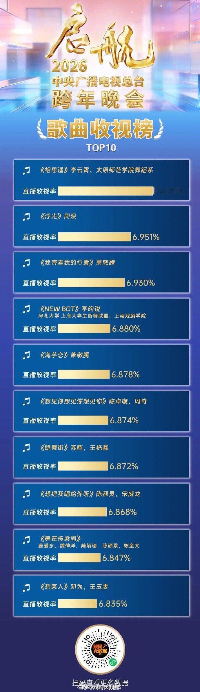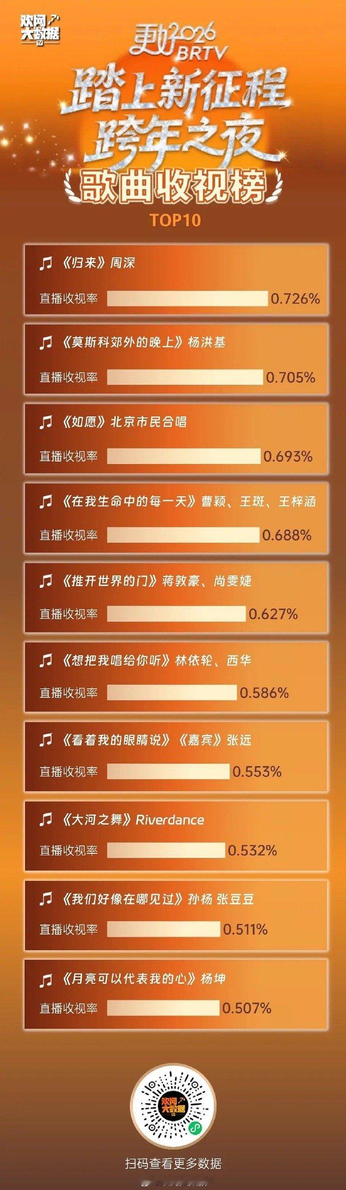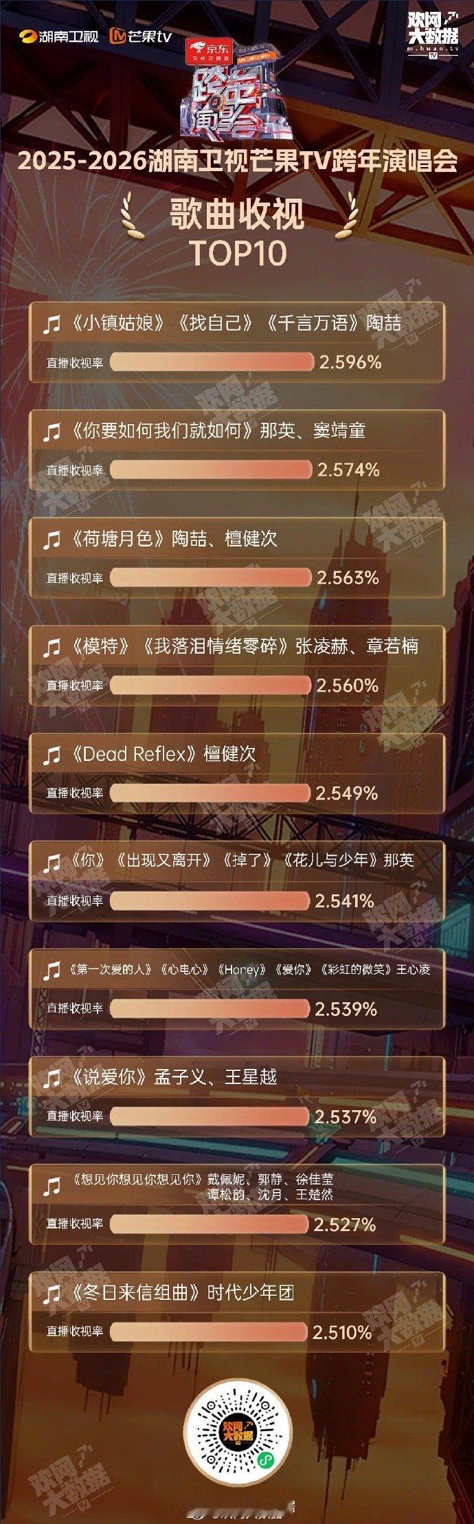 看看各大卫视跨年节目的收视率榜单前十