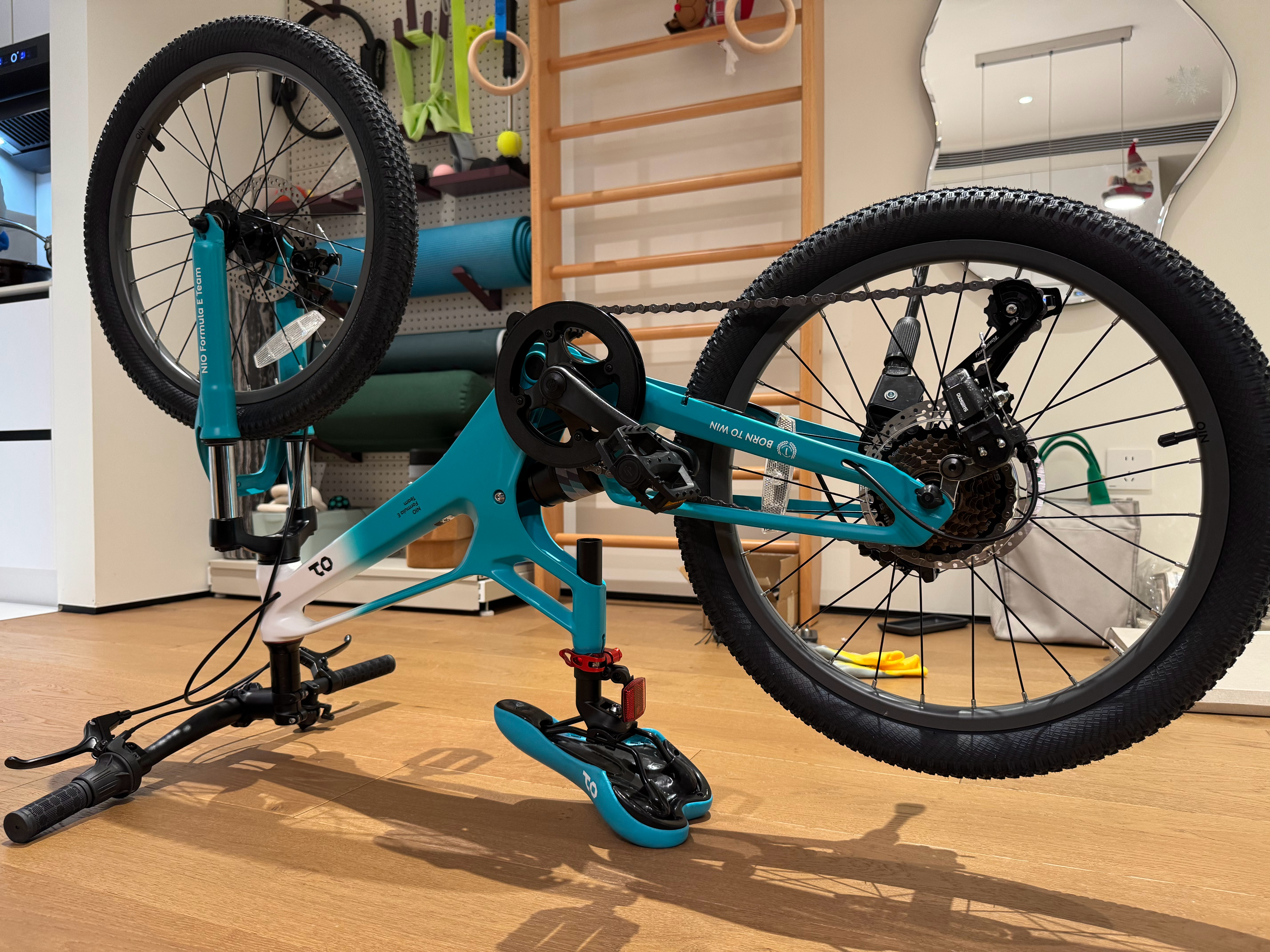 去年入了一台蔚来的折叠车。儿子身高高一些了,从迪卡侬16寸换成了NIO Life的20寸。小家伙已经能帮我一起调卡钳了。