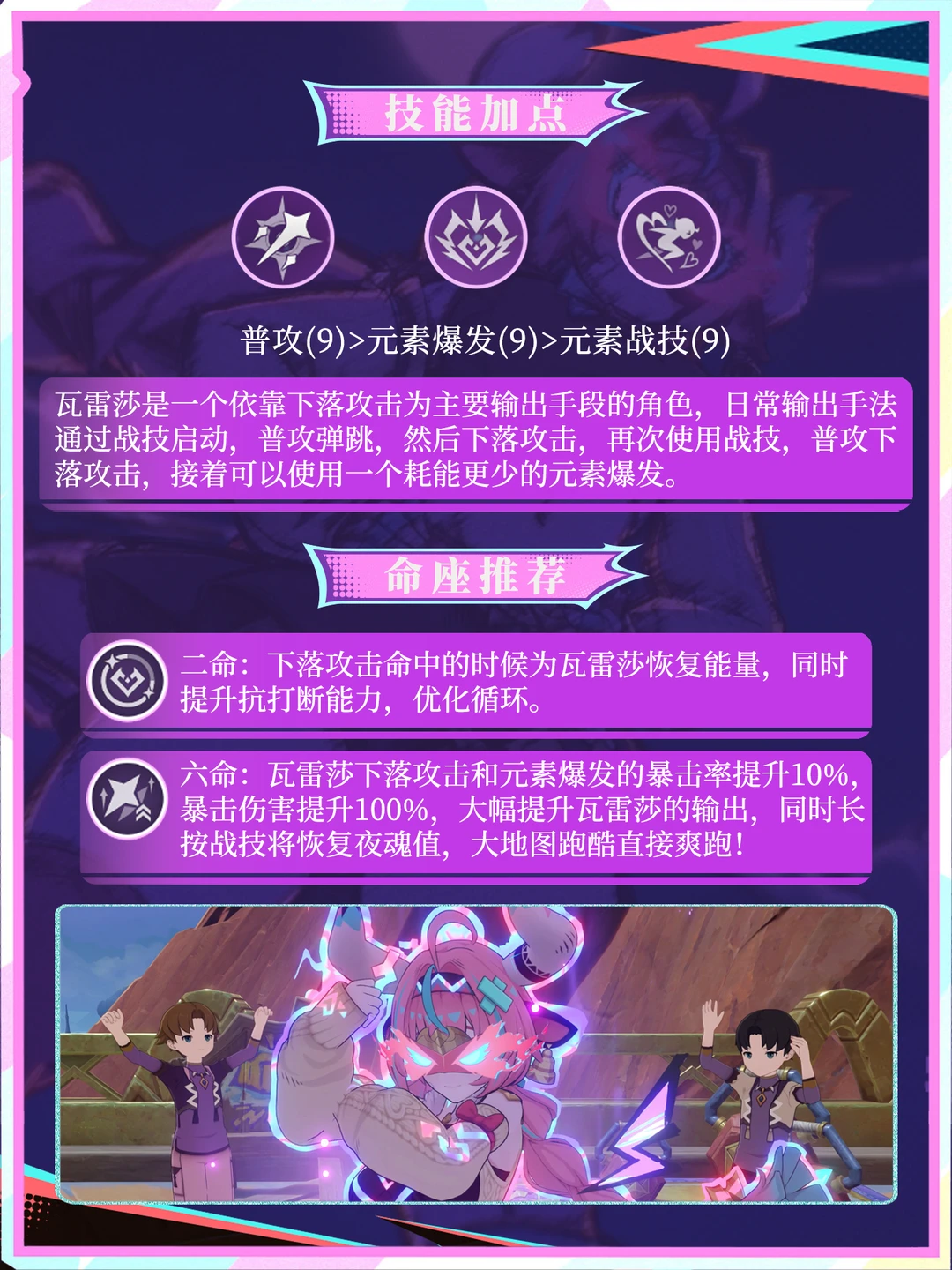 沃陆之邦的战士「瓦雷莎」养成攻略! 她主是雷系下落攻击角色,跑图也非常有优势 原神 原神创作者激励计划 原神萌新 原神攻略 游戏攻略 原来你也玩原神 原神日常 原神抽卡 原神瓦雷莎 原神纳塔
