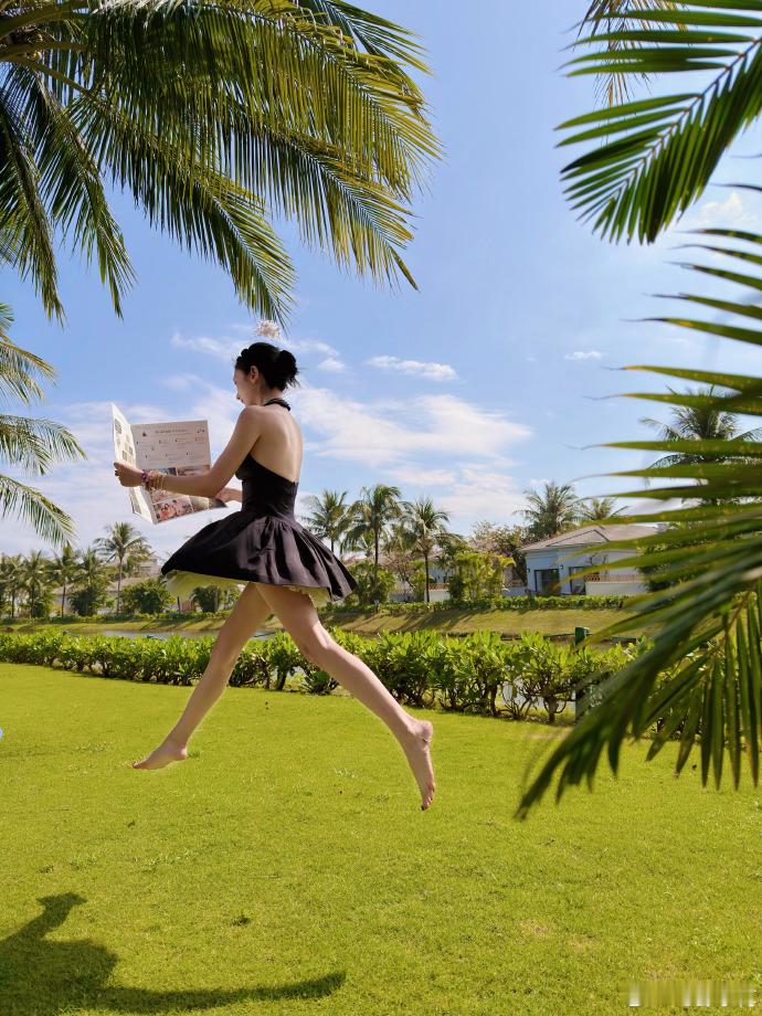 湖边草地的橘粉甜裙好温柔蕾丝吊带裙裹着透纱袖,像把晚霞揉进穿搭里,珍珠链+