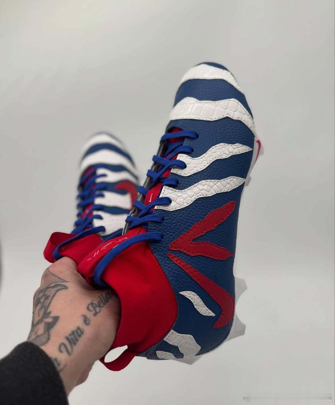 纽约巨人外接手万代尔罗宾逊上脚Ja 3橄榄球鞋。