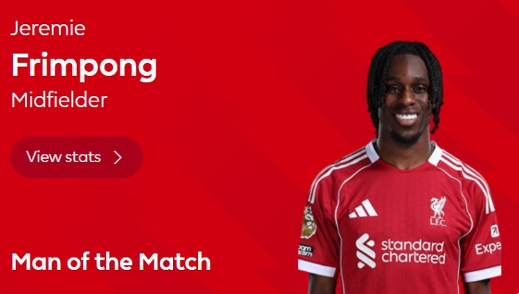 客串右边锋!英超官方:弗林蓬当选利物浦vs利兹联全场最佳