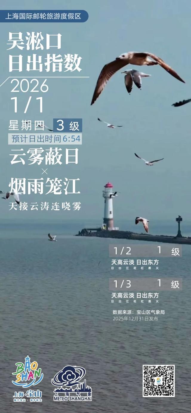 [吴淞口日出指数]1月1日3级云雾蔽日×烟雨笼江