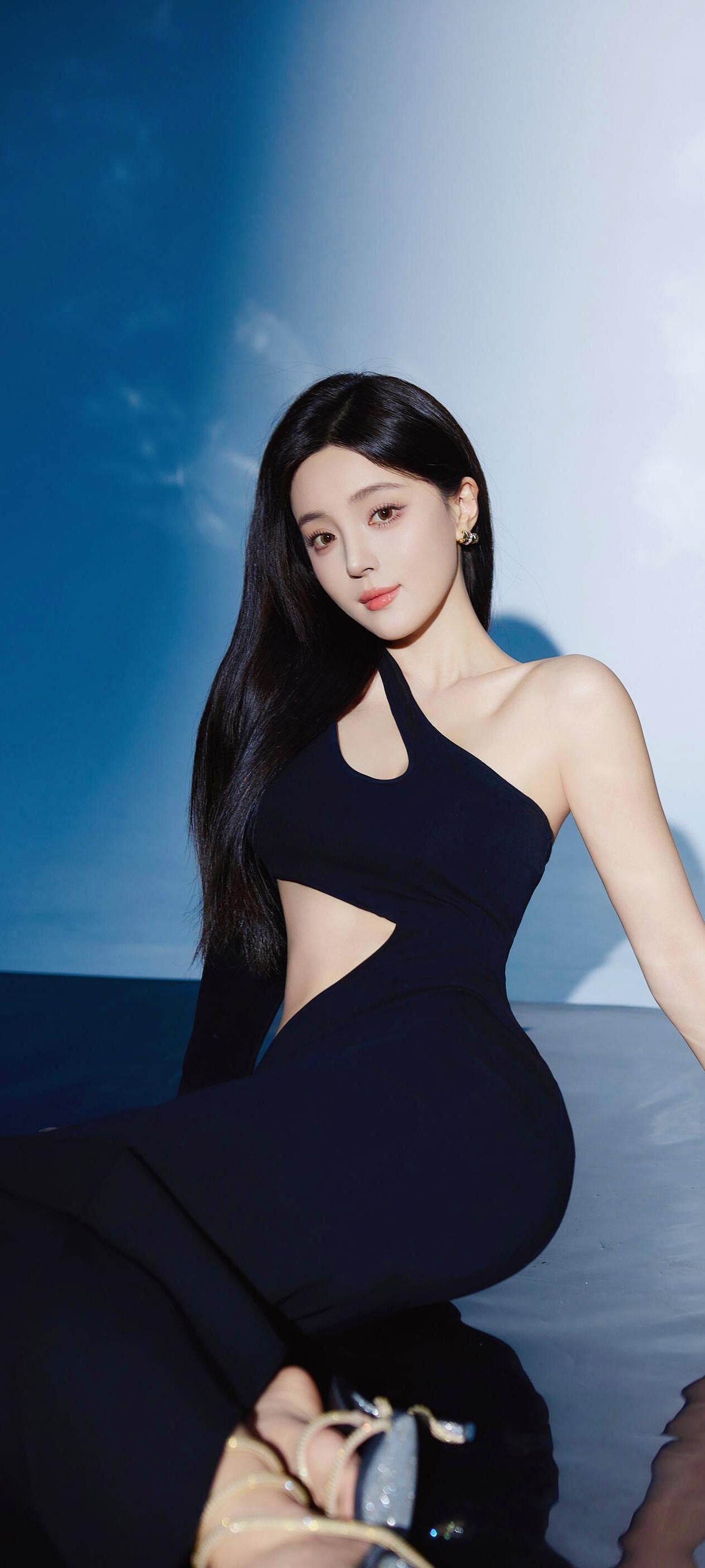《观影》原创诗词 一袭墨裁曳地长,青丝垂缕衬凝霜。 斜肩裁月玲珑影,皓腕凝金潋