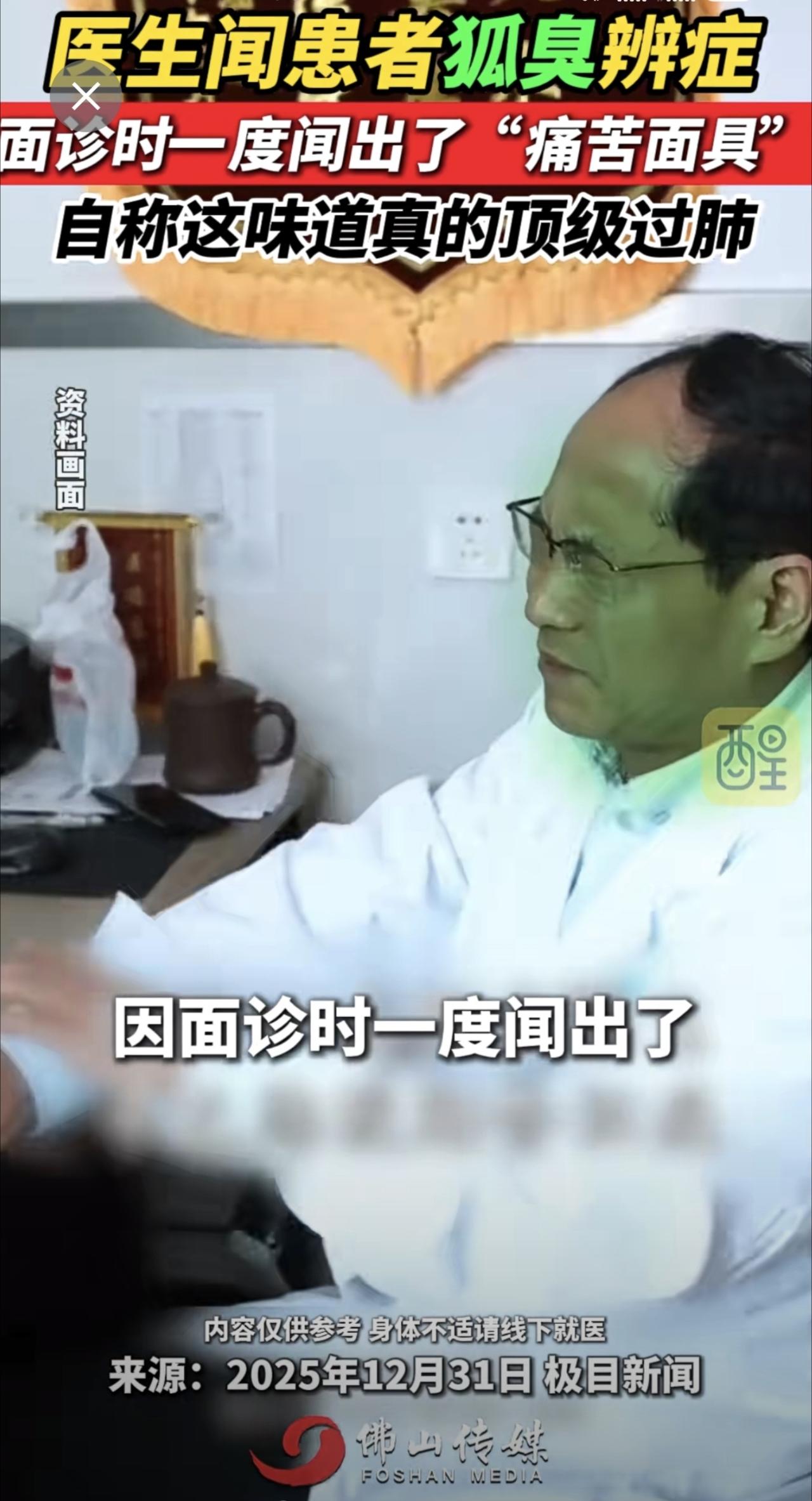 医生闻患者狐臭辨症面诊时,一度闻出了”痛苦面具“,自称这味道真的顶级过肺。(出镜