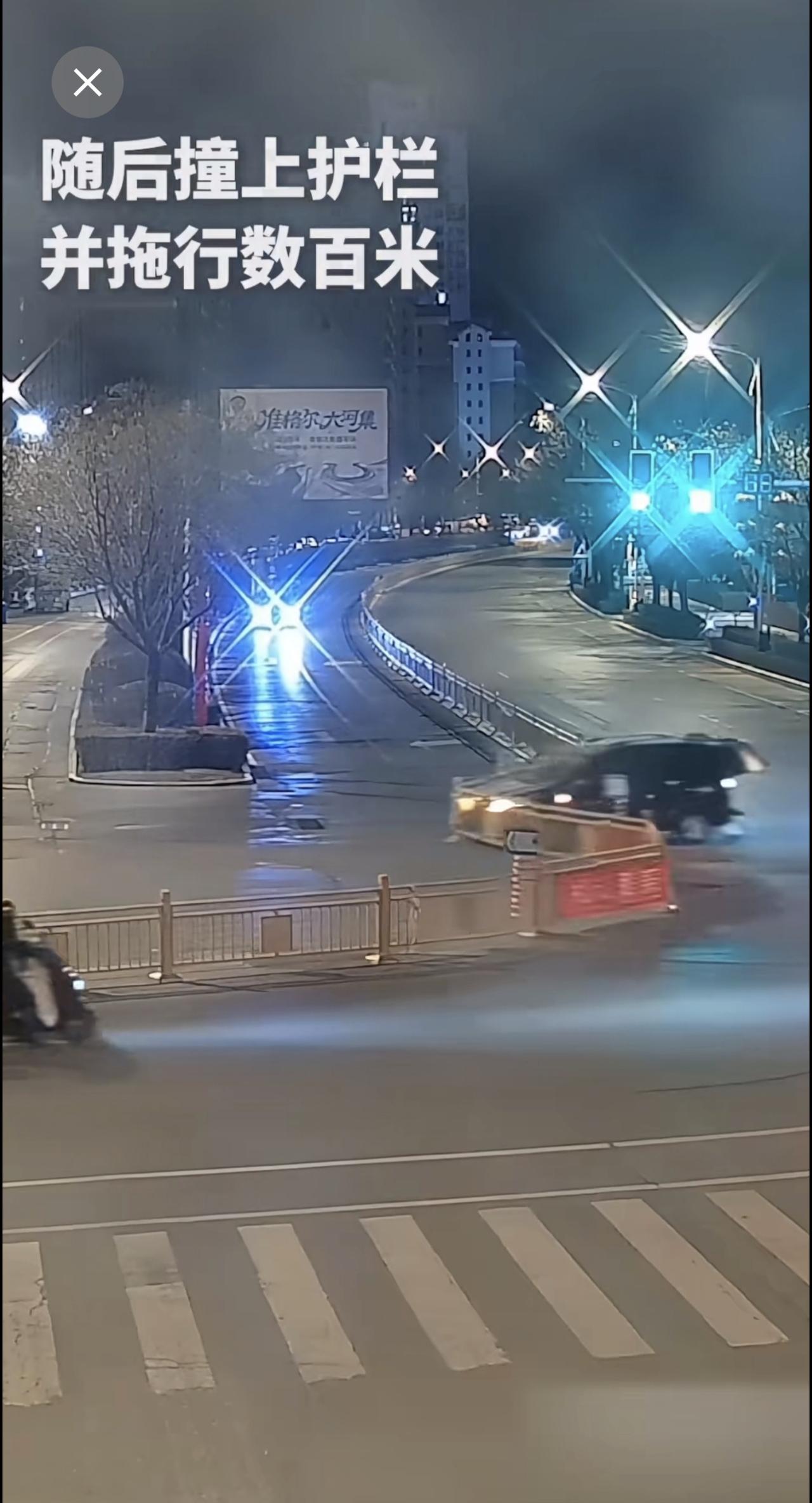 男子酒驾拖行护栏数百米后逃逸,目前已被依法拘留。交警提示:切勿酒后驾车!(来源: