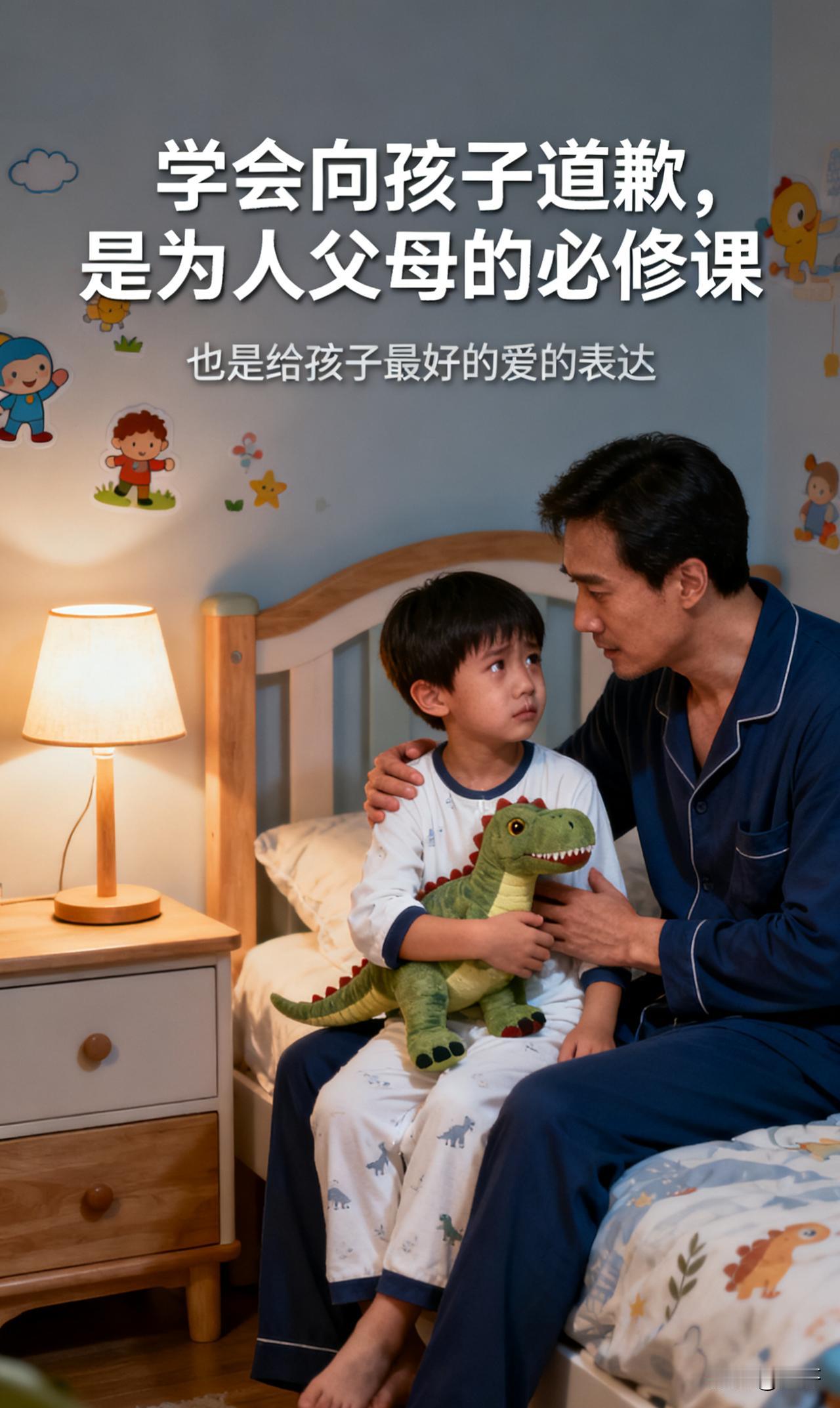 错怪孩子要道歉吗? 深夜,我坐在儿子房间门口,看着门缝里透出的微弱灯光,心里像压了块石头。 下午因为找不到重要合同,我不分青红皂白地指责他把文件藏起来玩,语气冲得像要喷火。 孩子攥着衣角反复说“不是我”,眼眶红得发亮,我却没心思听,只顾着发泄焦虑。 直到晚上在书房抽屉的夹层里找到合同,我才猛然惊醒——自己竟用成年人的急躁,伤害了最无辜的孩子。 作为父亲,我曾固执地认为“父母哪有向孩子道歉的道理”,总觉得孩子小,不懂什么委屈,等气消了自然就忘了。 可那天晚上,我看到儿子日记里画的歪歪扭扭的小人,一个叉号划掉的大人生气的脸,旁边写着“爸爸不相信我”,突然鼻子一酸。 原来我们总以为孩子羽翼未丰,却忘了他们的自尊心比大人更敏感,一句无心的指责,可能会在他们心里留下长久的阴影。 身边不少朋友也有过类似的经历:有的因为孩子不小心打碎东西就厉声呵斥,后来发现是物品本身不牢固;有的因为孩子考试成绩下滑就批评他不努力,却不知道孩子已经偷偷熬夜复习。 我们习惯了以长辈的姿态发号施令,却忽略了孩子也需要被尊重、被信任。 其实父母的“面子”,从来不是来自永不低头的权威,而是来自孩子发自内心的认可与依赖。 道歉不是示弱,而是对孩子最基本的尊重。 有一次邻居家的爸爸错怪孩子偷零花钱,后来发现是自己放忘了地方,他当着全家的面跟孩子说“对不起”。 原本沉默寡言的孩子,那天晚上主动跟爸爸分享了学校的趣事。 孩子要的从来不是多么隆重的道歉仪式,而是父母愿意放下身段,承认自己的错误,让他知道“爸爸妈妈是信任我的”。 作为男性家长,我们或许不擅长细腻的表达,但真诚的态度比什么都重要。 道歉不是否定父母的身份,而是用行动告诉孩子:每个人都会犯错,勇敢承认并改正,才是最可贵的品质。 这种以身作则的教育,比无数句“你要做个诚实的人”更有力量。 那些被父母真诚道歉过的孩子,往往更自信、更敢于表达,因为他们知道自己是被爱着、被尊重着的。 而那些被错怪后得不到道歉的孩子,可能会变得自卑、敏感,甚至不敢轻易相信别人。 亲子之间的信任,就像一张纸,皱了就很难抚平,一次不被重视的委屈,可能需要无数次的关爱才能弥补。 如果你也曾错怪过孩子,别再抱着“孩子不懂事”的侥幸心理。 一句“对不起”,看似简单,却能融化孩子心里的寒冰,修复亲子间的裂痕。 父母的道歉,从来不会让我们失去威信,反而会让孩子更愿意亲近我们、信任我们。 家庭教育的本质,不是父母对孩子的单向管控,而是一场双向的成长与奔赴。 学会向孩子道歉,是为人父母的必修课,也是给孩子最好的爱的表达。 你有没有错怪过孩子?最后道歉了吗?你是不是鸭子嘴硬认不了错?友友,评论区聊聊吧。 迷哥创作分享[比心]