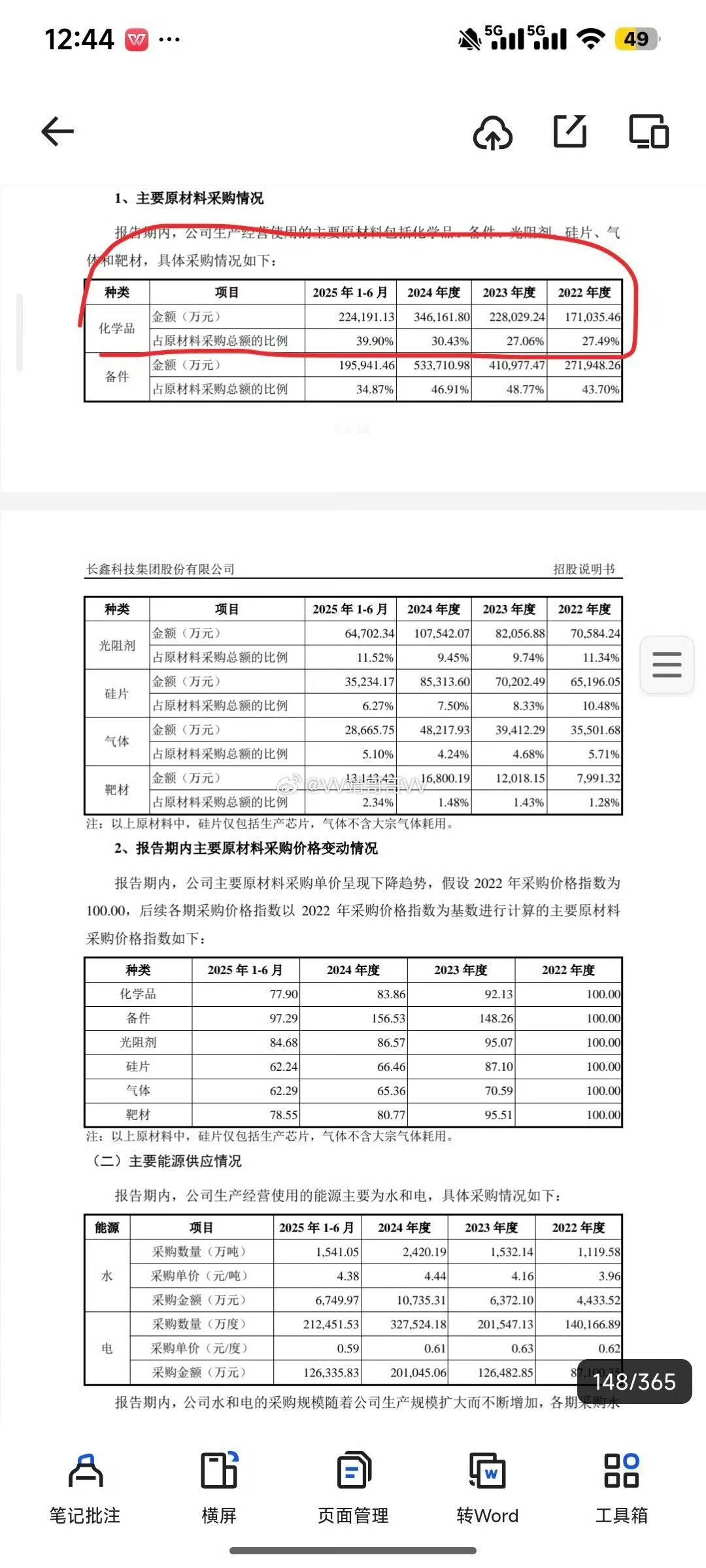 连夜看完长鑫360多页的招股书 发现最受益的是三块设备,封测和材料中, 尤其是材料方中的化学品的受益是最大的。 原因是我们可以看到长鑫对化学品采购的金额和占比都是连续5年保持上升,目前已达到总采购量的39.9%。 其金额比例远超光刻胶(11%)、硅片(6.27%),气体(5.10%)和靶材(2.34%)。 其中A公司一家就达到原材料采购金额的8.35%。