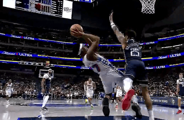 埃奇库姆倒地出手打成2+1也得分上双,76人领先独行侠11分