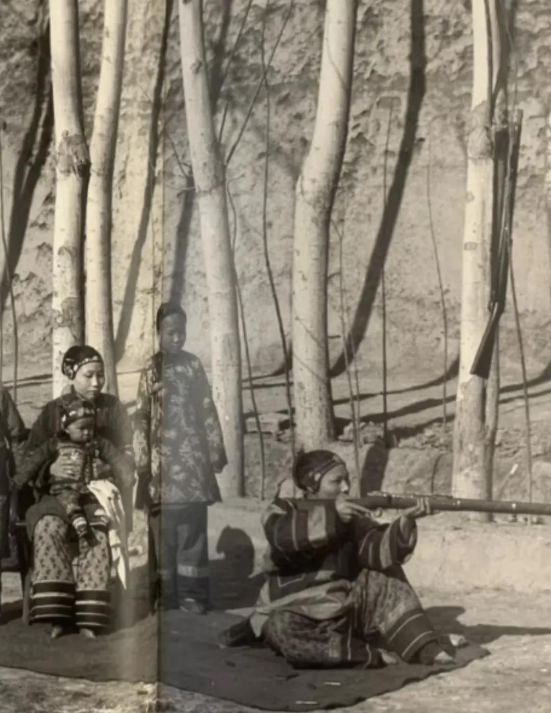 满人尚武,这是毫无疑问的,即使到了清朝灭亡前几年,各地驻防的满洲勋贵依然秉承了尚武的传统,只是那时他们已经不玩骑射而是玩火枪了,除了士兵外,驻防将军的家眷也要习练射击,女眷也不例外,将军家里裹着小脚的汉族小妾婢女也要持枪打靶,图片中操枪的就是1908年阿克苏将军家的女眷,她持枪的姿势看起来有模有样,应该是经过长期训练的。