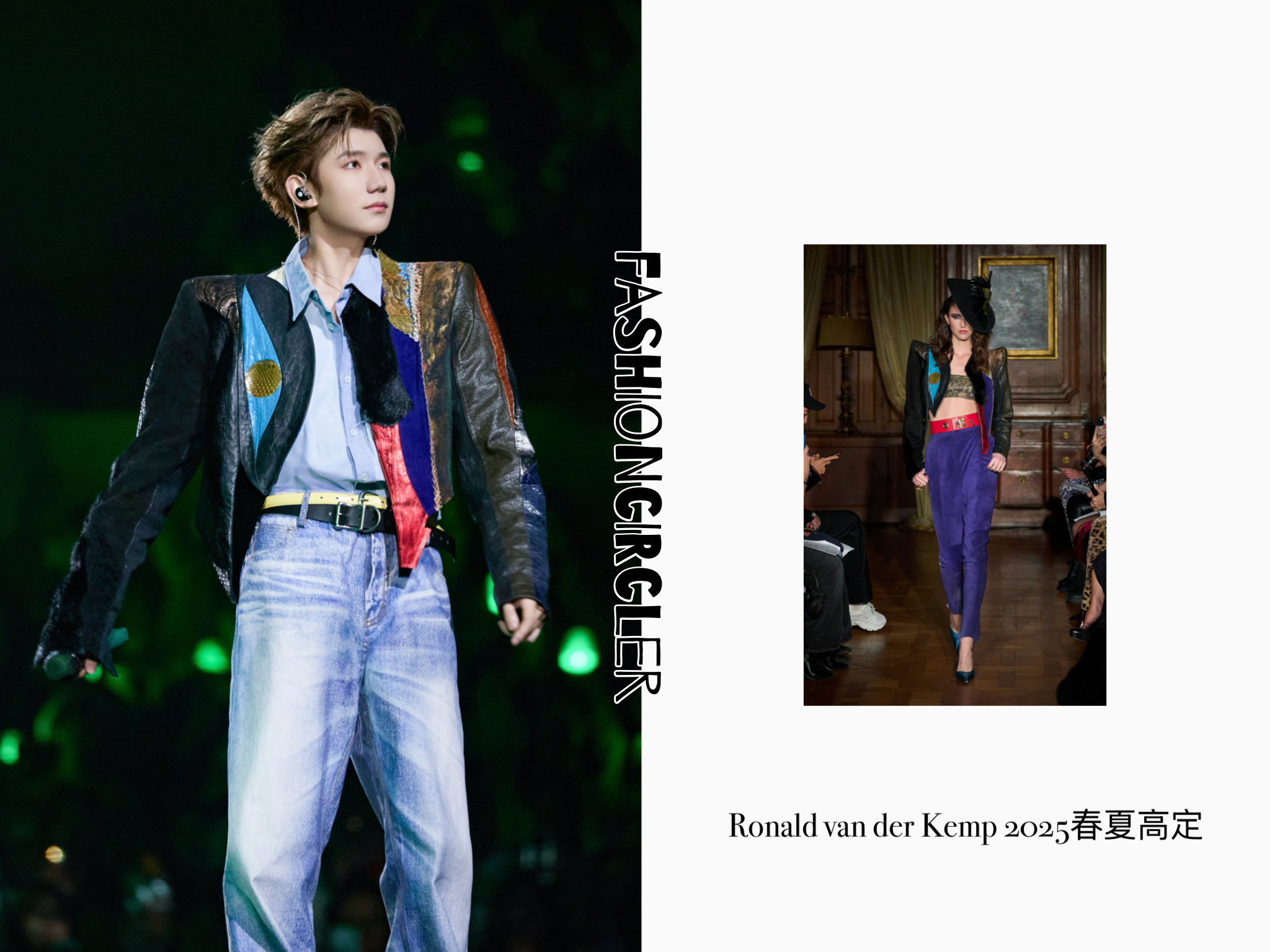 王源的跨年演唱会火热开唱,当然也少不了高定的加持,在新年第一天带来了Ronald van der Kemp 2025春夏系列高定时装的演绎,皮革拼接垫肩外套搭配衬衫和牛仔裤,点缀双层腰带,驾驭得非常漂亮,期待源哥2026年的更多精彩啦~王源跨年演唱会