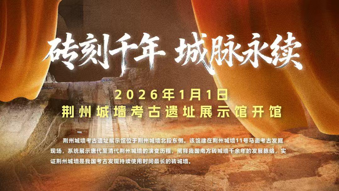 2026年1月1日,荆州城墙考古遗址展示馆建成开放。该馆建在荆州城墙11号马面考古发掘现场,系统展示唐代至清代荆州城墙的演变历程,阐释我国南方砖城墙千余年的发展脉络,实证荆州城墙是我国考古发现持续使用时间最长的砖城墙。