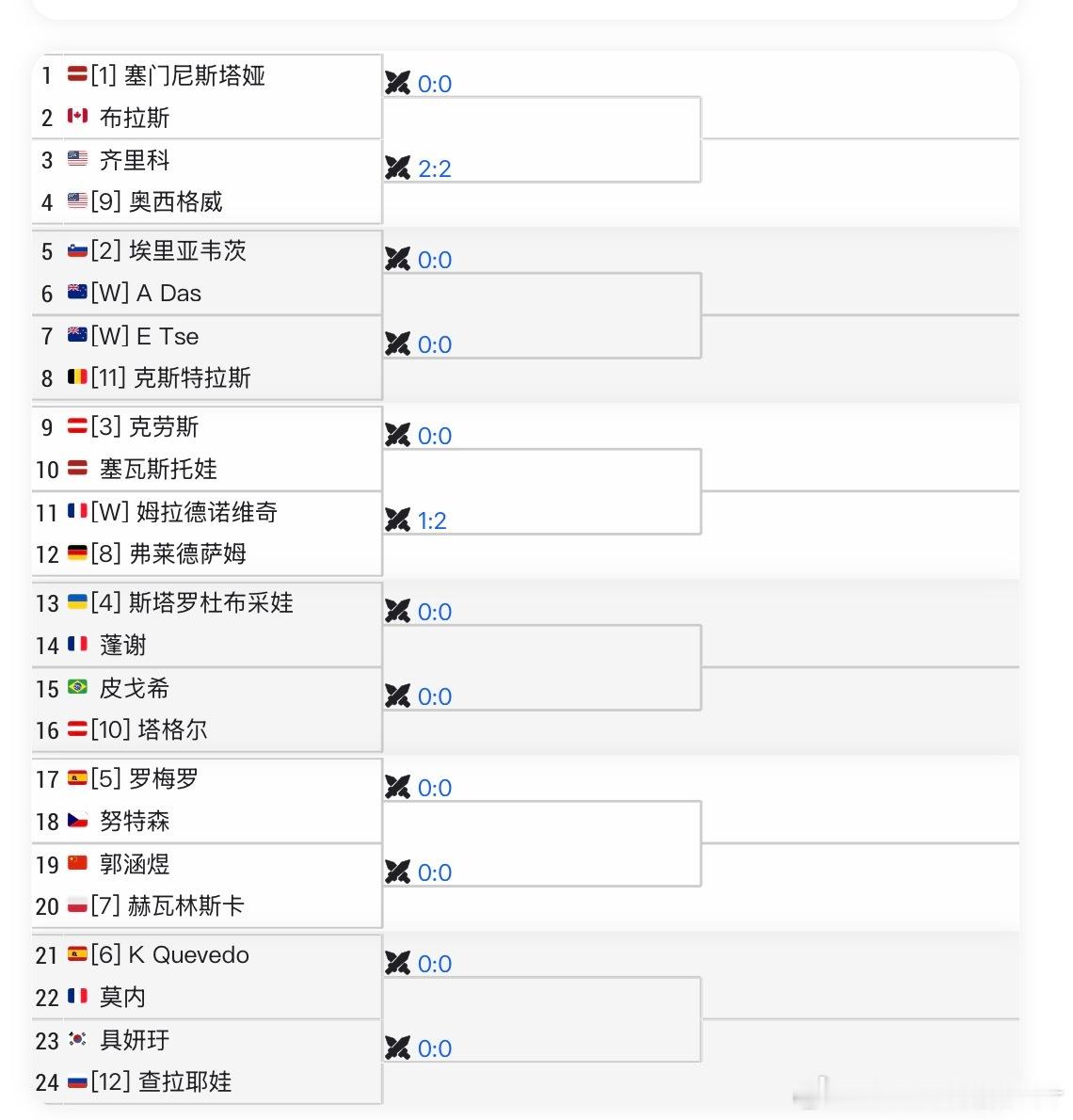 🔵WTA250奥克兰女单资格赛签表🇨🇳郭涵煜vs【7】🇵🇱赫瓦林斯卡新