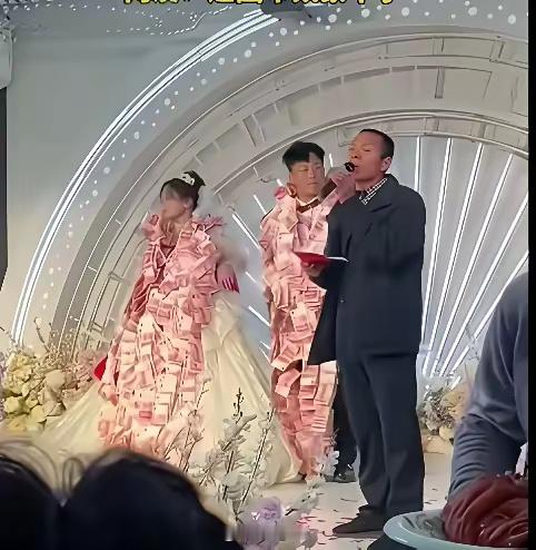 红毯新潮流!新郎新娘将人民币元素穿上身,囍字与纹样巧妙融合,传统礼俗碰撞时尚设计