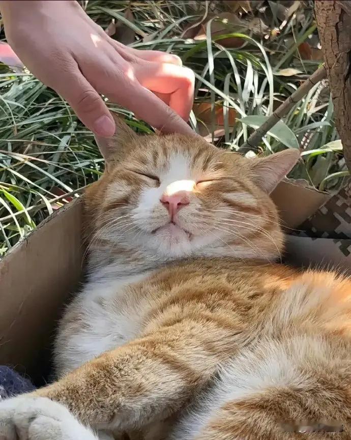 给你们看一下,这就是校园猫的日常,躺在学生们准备的纸箱猫窝里,晒着小太阳,懒洋洋地享受着[撇嘴]最后那张真的过分了