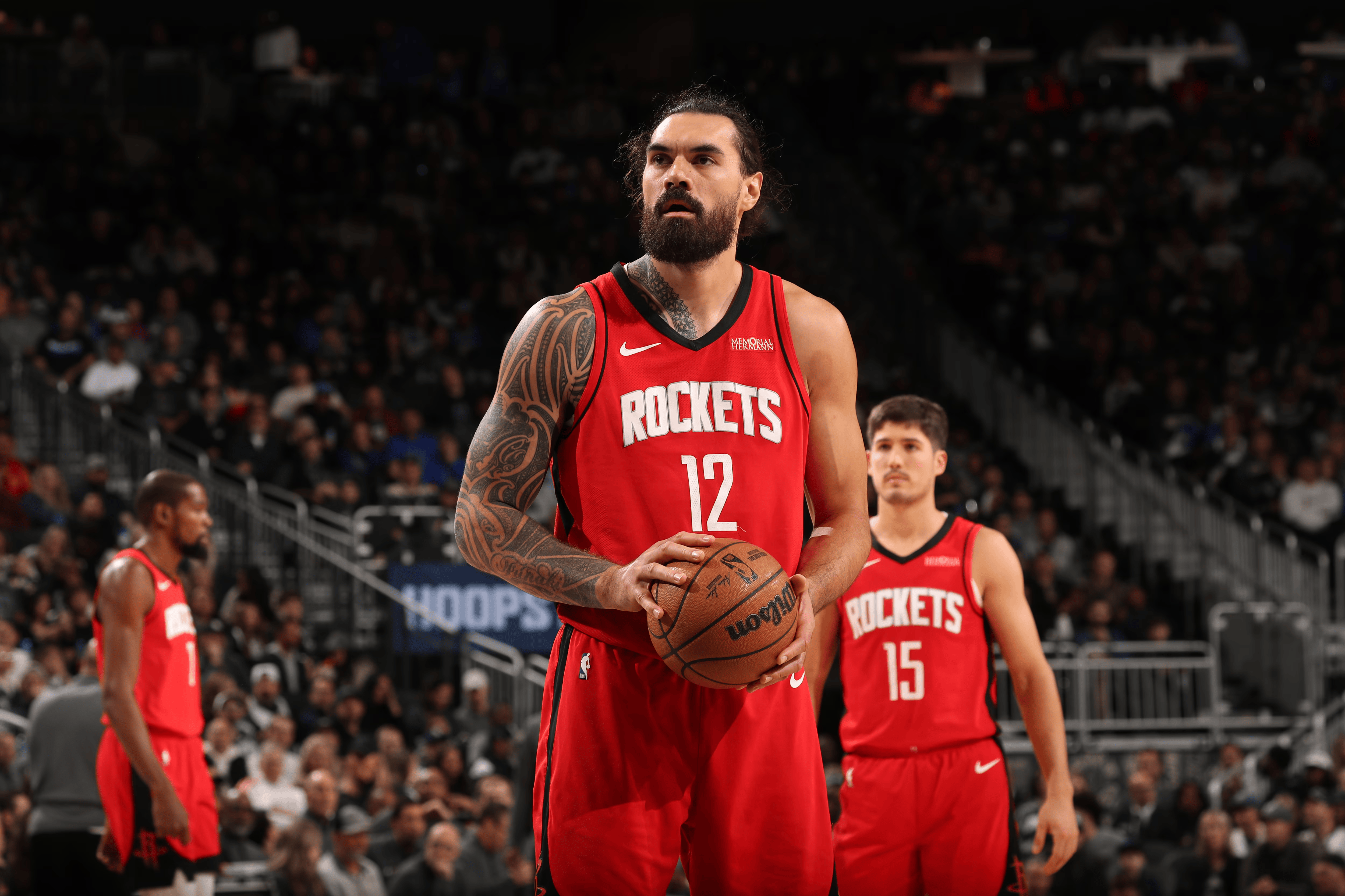 据火箭自媒体StevenAdamsStats统计,在本赛季亚当斯出场的542分钟里,火箭的总篮板数比对手多出200个(580对380)。