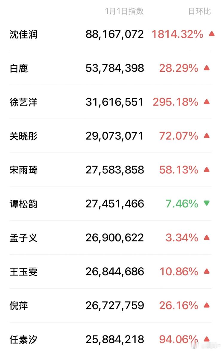 跨年晚会1.1微指男女top10,沈佳润也是黑红也是红